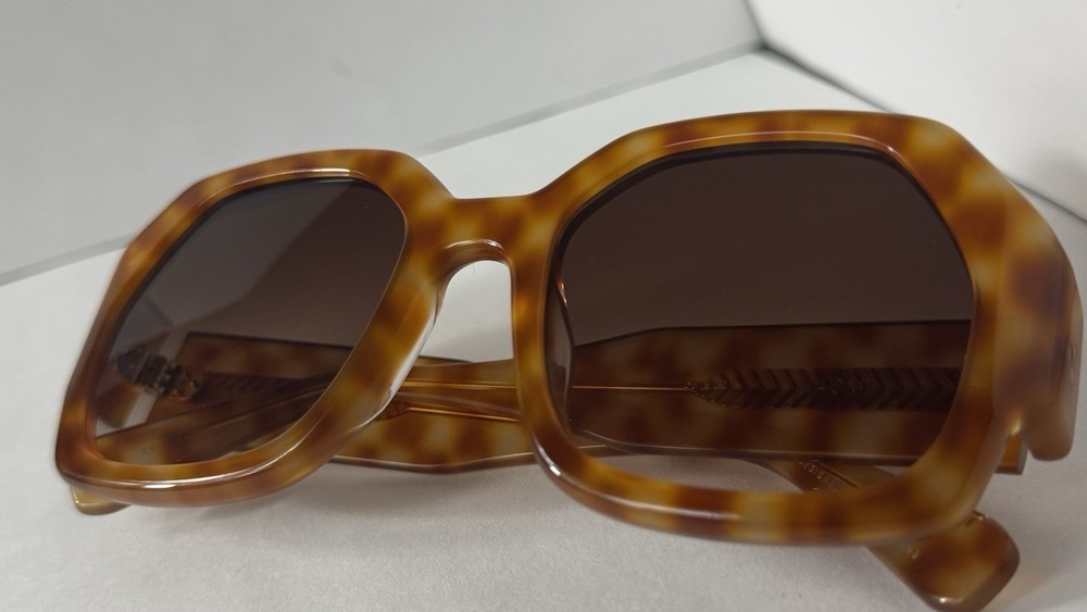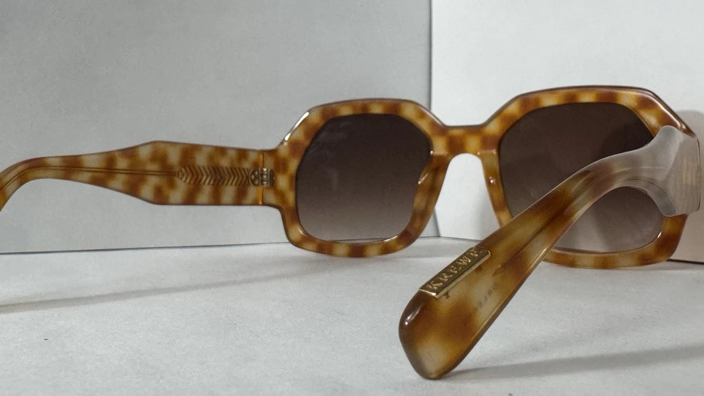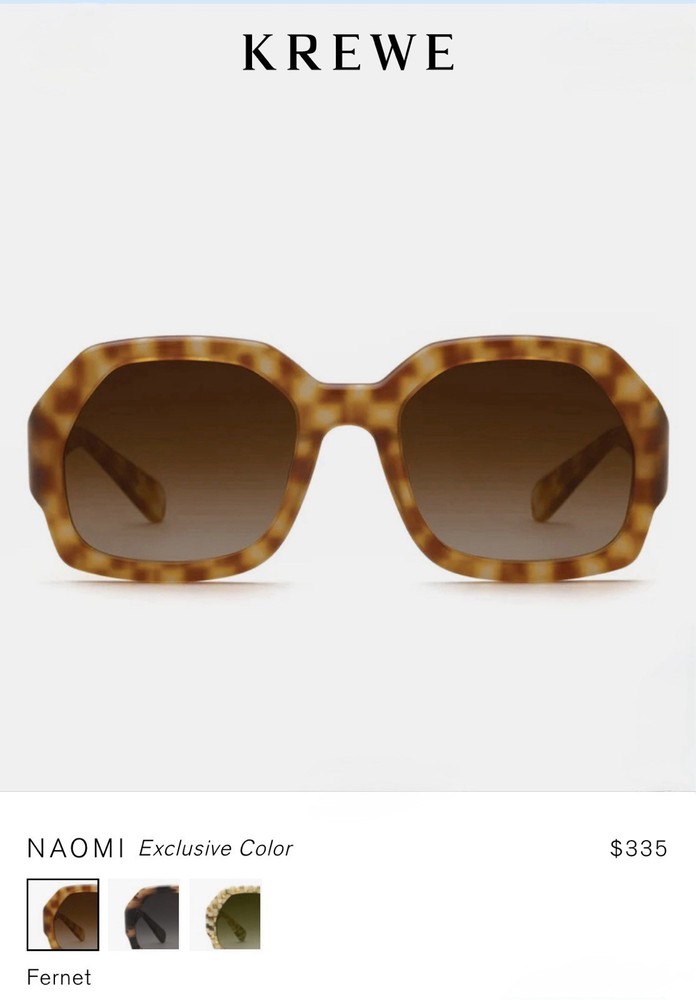 KREWE Naomi Fernet Sunglasses Glam goes retro. The KREWE Naomi Fernet Sunglasses are a bold nod to vintage style, bringing oversized allure and sculptural charm to the modern wardrobe. With a full-wrap fit and confident silhouette, Naomi is the ultimate statement piece, guaranteed to elevate any look with a hit of cool, timeless glamour. Handmade from glossy acetate, the frame is both lightweight and substantial, designed for long-lasting wear. Riveted 5-barrel hinges and an adjustable temple wire ensure a secure, comfortable fit, while the handmade process means each pair has subtle variations in pattern and color—no two are exactly alike. Fitted with custom amber gradient lenses, Naomi offers 100% UVA and UVB protection alongside anti-reflective and scratch-resistant coatings for superior clarity and durability. This frame is also prescription ready, delivering both fashion and function in one unforgettable package. Note: This item is 100% authentic and brand new, sourced from boutique overstock and showroom pulls. Because of this, original packaging (case/box) is not included. We stand by every item we sell—if you have any concerns, we’re here to help.