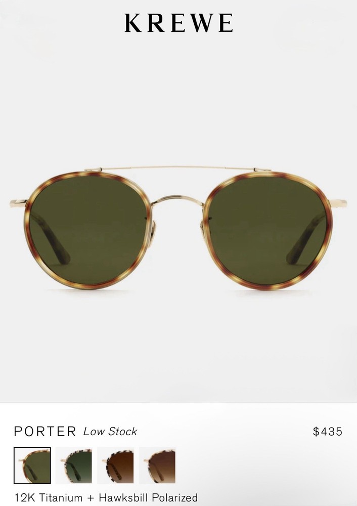 KREWE Porter 12K Titanium + Hawksbill Polarized Sunglasses The Porter 12K Titanium + Hawksbill Polarized is part of a now discontinued colorway in the Porter lineup and increasingly impossible to find. With summer approaching, this is a rare opportunity to secure one of the last remaining pairs before they disappear from the market entirely. A standout in the KREWE lineup, the Porter 12K Titanium + Hawksbill Polarized Sunglasses deliver timeless sophistication with a fresh, modern edge. This signature round frame blends lightweight materials and bold structure, making it the perfect everyday companion for anyone who loves a refined, classic look. Handmade with precision, the Porter frame pairs glossy acetate with luxurious 12K gold-plated titanium hardware for a design that’s both durable and stylish. Adjustable nose pads and temple wire ensure a secure, customized fit, while petite integral titanium hinges elevate durability and craftsmanship. Each pair is handmade, creating subtle variations in pattern and color that make every frame uniquely yours. Outfitted with custom grass green polarized lenses, the Porter offers 100% UVA and UVB protection to safeguard your eyes. Anti-reflective and scratch-resistant coatings ensure long-lasting clarity and performance, making them ideal for all-day wear. This frame is also prescription ready, combining fashion and practicality for a polished, versatile finish. Note: This item is 100% authentic and brand new, sourced from boutique overstock and showroom pulls. Original packaging (case/box) is not included. We stand by every item we sell—please reach out with any concerns.