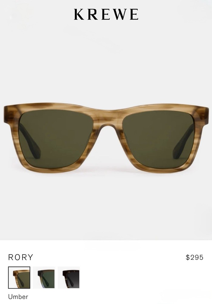 KREWE Rory Umber Sunglasses The ultimate frame for everyday wear, the KREWE Rory Umber Sunglasses combine classic versatility with elevated detailing. Featuring a slightly oversized square silhouette, Rory is refined with raised rivets at the temples and KREWE’s signature beveling around the lenses—subtle design touches that set it apart while keeping the look timeless. Handcrafted from glossy acetate in the warm, earthy Umber colorway, this frame offers both durability and comfort. An adjustable temple wire ensures a secure fit, while custom-designed riveted 5-barrel hinges provide long-lasting strength. As part of KREWE’s meticulous handmade process, each pair showcases slight variations in pattern and tone, making every frame one of a kind. Fitted with custom Grass Green lenses, Rory balances modern style with reliable performance. The lenses deliver 100% UVA and UVB protection and include anti-reflective and scratch-resistant coatings for clear, everyday wear. This frame is also prescription ready, offering practical function with bold personality. Note: This item is 100% authentic and brand new, sourced from boutique overstock and showroom pulls. Because of this, original packaging (case/box) is not included. We stand by every item we sell—if you have any concerns, we’re here to help.