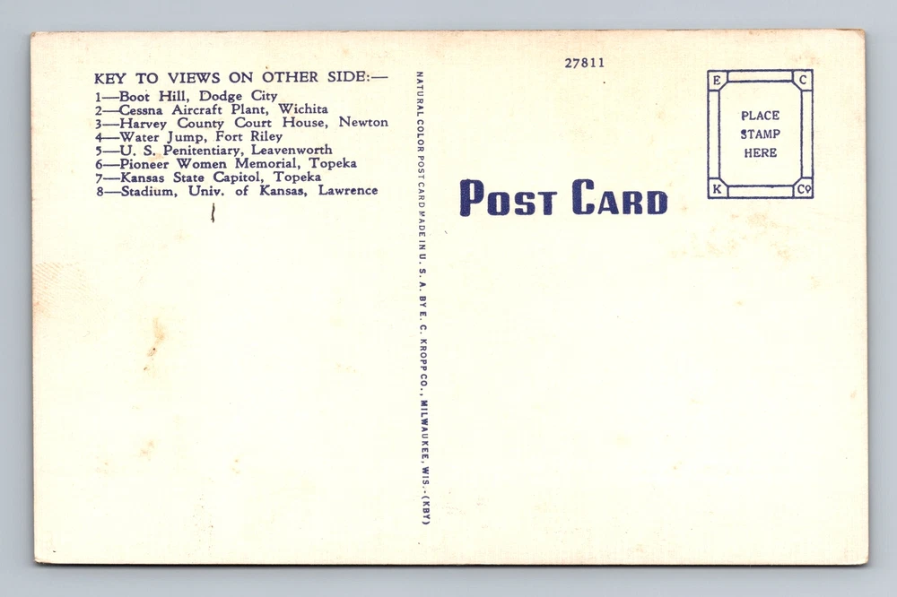 Type: Printed (Lithograph) Country/Region of Manufacture: Unknown Original/Licensed Reprint: Original Theme: Cities & Towns City: Kansas Country: USA Material: Paper Unit of Sale: Single Unit Postage Condition: Unposted Era: Vintage Subject: Cities & Towns Region: Kansas Size: Standard (5.5 x 3.5 in)