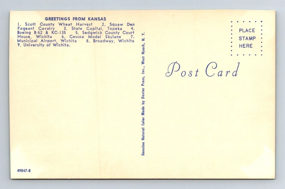 KS-Kansas, Scenic Map Greetings, Landmarks, Vintage Postcard