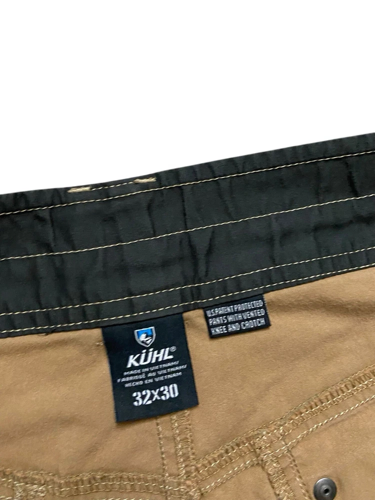 Style: Carpenter Pocket Type: Slash Pocket Occasion: Casual, Travel, Workwear Handmade: No Vintage: No Size: 32 MPN: 5098 Front Type: Flat Front Department: Men Country/Region of Manufacture: Vietnam Closure: Button, Zip Season: Fall, Spring, Summer, Winter Theme: Hiking, Outdoors, Active Brand: Kuhl Material: Cotton, Nylon, Spandex Pattern: Solid Fabric Type: Woven Personalize: No Rise: Mid (10-12 in) Size Type: Regular Features: Breathable, Comfort, Lightweight, Pockets, Stretch Fit: Classic Inseam: 29 in Product Line: Kuhl Konfidant Air Pants Accents: Embroidered Garment Care: Machine Washable Color: Brown Leg Style: Straight Model: KUHL Konfidant Air Pants Type: Pants Waist Size: 32 in
