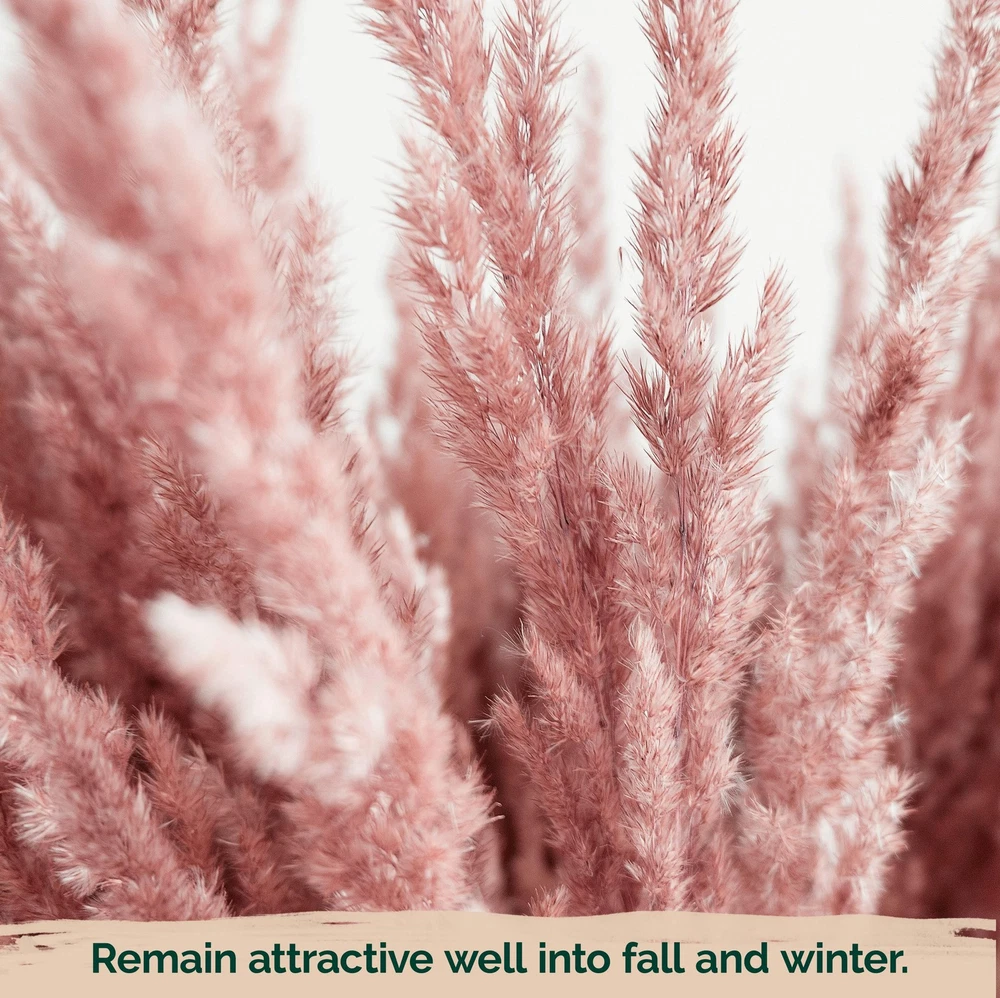 KVITER 100 Pink Pampas Grass (Cortaderia Selloana Rosea) Seeds, Ornamental Grass Seeds Heirloom, Hardy Pampas, - Ideal for Outdoor Perennial Plants, Garden Borders and Pampas Grass Decor Key Features: i High Germination Rate: These pink Pampas Grass Seeds for Planting, (Cortaderia Selloana seeds - Perennial Grass seeds) germinate in 14-21 days at 65-75 ° F, forming ornamental grasses. i Easy to Grow: Sow pink grass seed (perennial grass seed) 1/4 inch deep in full sun. Pampas grass seeds for planting outdoors yield lush ornamental grass plants in USDA zones 7-11. i Versatile Beauty: Decorative grass seeds produce blush pink pampas grass plants live with fluffy plumes, adding striking height of Pink pampas grass tall up to 7 ft and width of 4.9 ft. i Hardy & Adaptable: Hardy pampas grass - Pink Ornamental Grass, Tall Decorative Grass - flourish in varied soils. These outdoor perennial plants stand tough. i Lush Displays: Natural Pampas Grass Plants create lasting scenes in gardens or containers. Pink Dried Pampas Grass is used in Shelf Styling, Wall and Bedroom Decor. Product Description: Elevate your landscape with the elegant allure of pink pampas grass. With its stunning blush-toned plumes and graceful arching leaves, this perennial ornamental grass becomes a focal point in any outdoor setting. Perfect for gardeners seeking natural beauty, it offers season-long interest and flexible styling options, whether planted as a standalone specimen or used to enhance garden borders and screens. Growing to about 7.4 ft in height and spreading nearly 4.9 ft wide, this hardy selection suits a variety of climates and conditions. Adaptable and resilient, it thrives in full sun and well-drained soil, blending seamlessly with other garden flowers. If you're searching for the best grass seed for summer or fast growing grass seeds that can handle diverse conditions, consider pairing this ornamental showpiece with drought resistant grass seed or drought tolerant grass seed to maintain a lush, water-wise landscape. Planting seeds in late spring ensures a strong start, while proper care, like removing spent plumes and protecting young shoots-supports vigorous growth. For southern regions, where grass seed for southern lawns is essential, this choice easily adapts to warmer conditions. By incorporating grass seeds known for resilience, you can create a harmonious setting that remains green and vibrant, even through changing seasons. Whether you're reimagining an empty plot or enhancing a mature garden, these grass seeds add texture, movement, and visual intrigue. From best grass seed for summer strategies to achieving year-round beauty, pink pampas grass complements a range of planting plans. Its enduring presence and striking blooms make it a favorite among designers and home gardeners alike. Elevate your outdoor aesthetic and enjoy the lasting elegance this ornamental grass provides, proving that even the simplest additions can transform an entire landscape. We create products that preserve the purity of nature and brighten the world.