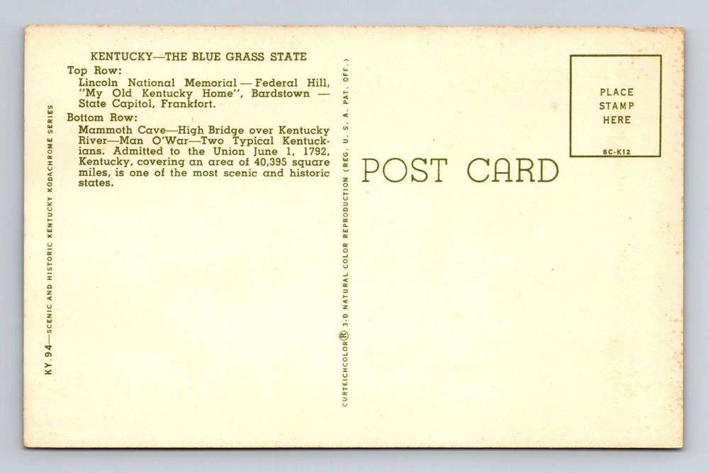 City: Kentucky Region: Kentucky Country/Region of Manufacture: Unknown Era: Vintage Unit of Sale: Single Unit Original/Licensed Reprint: Original Theme: Cities & Towns Postage Condition: See Image Type: Printed (Lithograph) Subject: Cities & Towns Country: USA