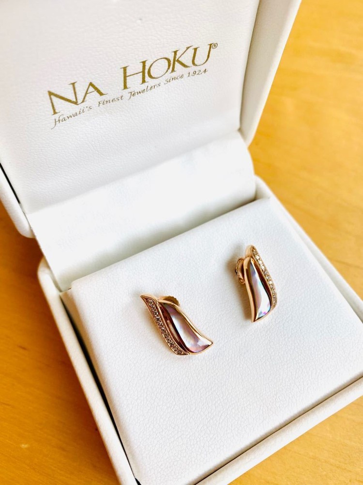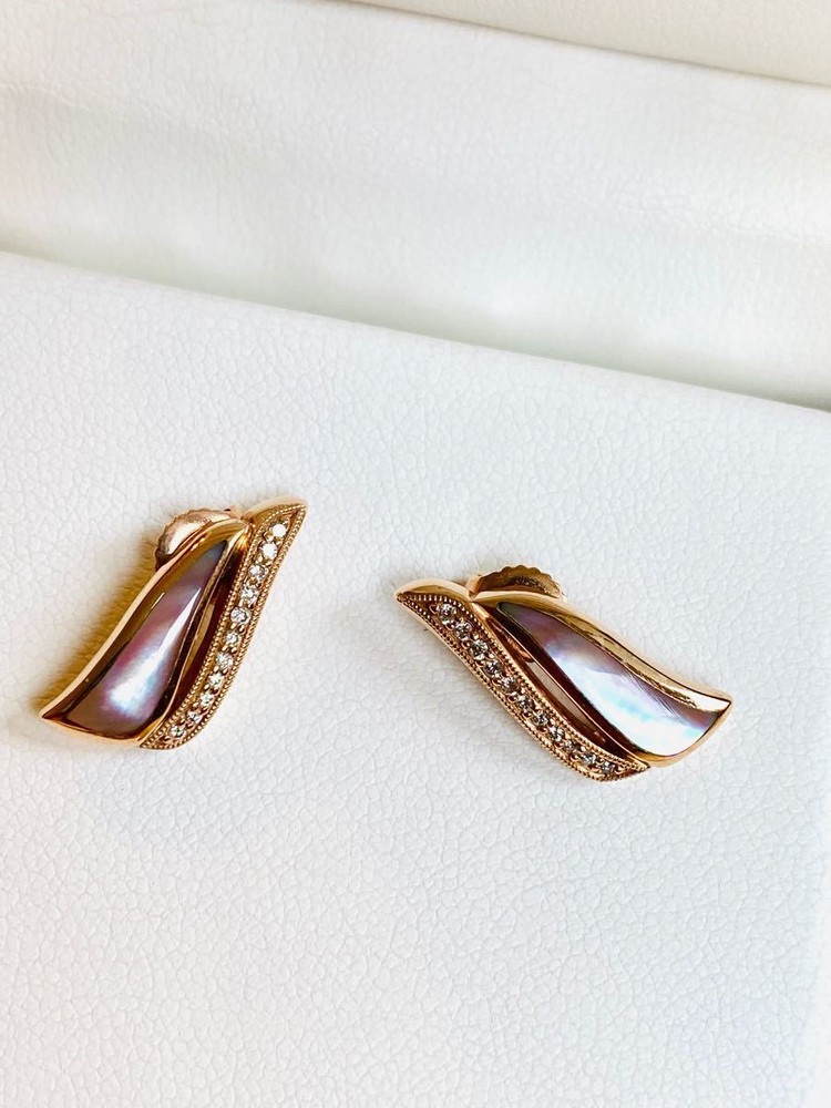 Absolutely love these elegant studs! The 14k rose gold pairs beautifully with the shimmering mother of pearl and delicate diamond accents. They’re lightweight yet feel luxurious, perfect for everyday wear or special occasions. The included box case adds a nice touch for gifting or storage. A stunning, timeless piece that elevates any outfit effortlessly.