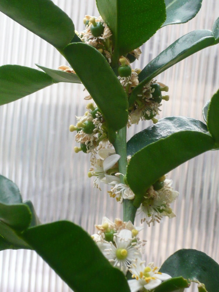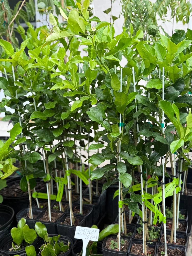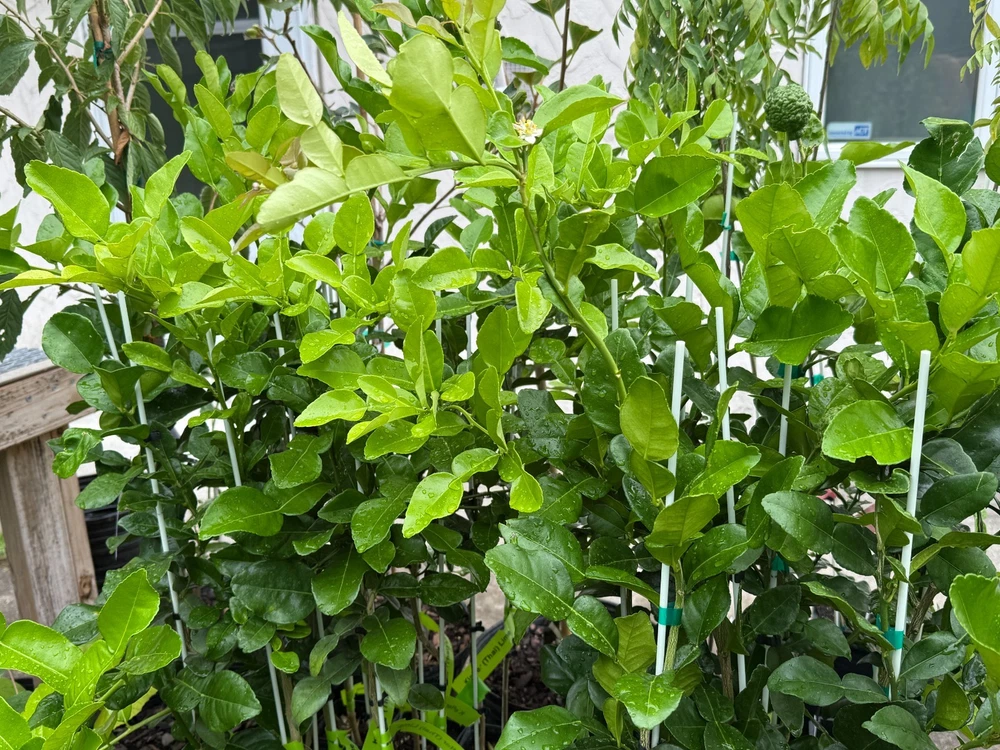 *** We ship this plant to the West Coast only during this time due to the cold weather. **** *** We do not ship this plant to FL due to the state regulations. *** Grown in a 4" x 12" or 5" x 12" pot, Primo size. Full-size, large edible leaves, and fruits; Fruit, rind, juice, and leaves are used in Thai, Laotian, Malaysian, and Cambodian cooking. Cut leaves in summer and store them in the freezer for your cooking all year round. Grafted semi-dwarf Thai Kaffir Lime tree is good for containers. They can be planted in the ground in zones 9-10. It should be the container plant for the other zones. Keep them outdoors from late May to October for the colder zones and put them indoors when the temperature is less than 40 degrees. 24" to 36" + trees, Pictures for reference only. The example of trees we currently ship as of July 2025 are shown in the pictures. Each plant is different in shape and size. Fragrant plants, and dark green leaves, smell good in delicious meals, and in your house. Some trees are fruiting Picture and content credit - itsnature.org The kaffir lime (Citrus Hystrix) is a rough, warty green fruit that has an exotic aroma and it is famously known for its double-shaped leaves, and both the fruit and its leaves are used for cooking to increase the scent of dishes. The leaves of this fruit are egg-shaped and its color is dark green on top but lighter green at the bottom. Kaffir limes have a lot of health benefits and are used to do more than just cooking. Some would opt to use kaffir lime for medicinal purposes. There are also cultures in certain countries that use the fruit for spiritual purposes. Kaffir lime can be found in Laos, Indonesia, Thailand, and Malaysia, and thus, they are mainly used in South-East Asian cuisines. In Thailand, the kaffir lime leaves are widely famous when cooking their famous delicacy dishes. Thai cooking uses leaves in Tom Kha (soup), Tom Yum (soup), Todman (shrimp or fish cake), Panang (curry), Chiang Mai Noddle, Chicken Satay, Prik-Khing curry, and some other curry dishes and hot-spicy stir-fried. It is also mainly used in Lao curry pastes and Malaysian and Burmese cuisines. The fruit and the leaves both bring out more zest into any cuisine and increase the scent as well. Many use the kaffir lime for spicy dishes as the taste and the smell could complement perfectly with spicy foods. Generally, kaffir lime contains many nutrition and health benefits. It contains tannin, triterpenoids, and saponin which are good for skin growth especially the leaves. Some use them for hair treatment and treatment for hair follicles. Combining with normal shampoo, people would just lather up their hair and massage their scalp in order for the lime extract would seep through the skin and repair the hair scalp which ultimately would cure the root of each strand of hair which will appear much shinier and healthier. The kaffir lime also cures coldness and lethargic and its bitter taste too can help with blood circulation.
