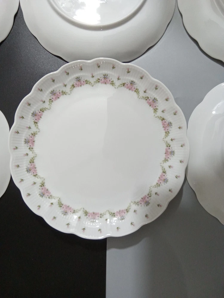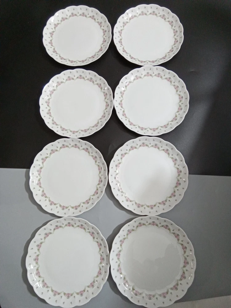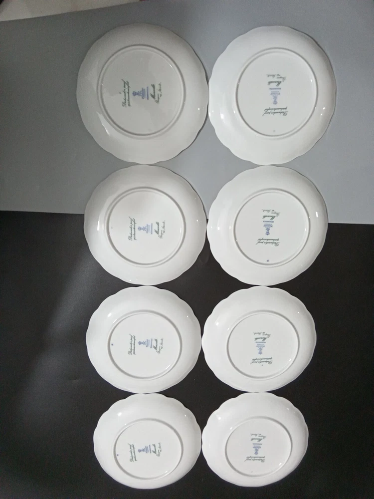 This set of eight Kaiser Marseille porcelain salad plates is a must-have for any collector or lover of fine dinnerware. Crafted in Germany, these plates boast exceptional quality and elegance. The plates measure 7.5 inches in diameter and feature a beautiful design that is sure to impress any guest. The brand Kaiser is known for its superior porcelain products, and this set of plates is no exception. They are perfect for any occasion, from a casual family dinner to a formal event. Add these plates to your collection today and elevate your dining experience.