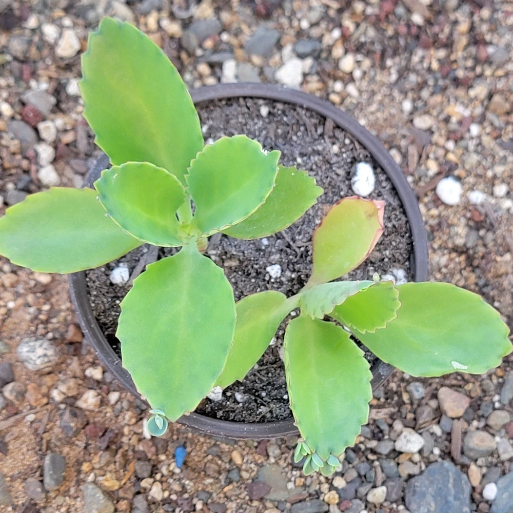 Kalanchoe Daigremontiana, commonly known as "Mother of Thousands", is a well-known succulent that is ideal for novice growers. Due to its ease of propagation, it can be considered either a nuisance or a fascinating addition to any succulent collection. The leaves are adorned with small bulbils along their edges, which, when detached, can sprout into new plants upon reaching the ground. Please Note: Plant will ship bare root with little to no dirt, and you will receive a plant similar to the one in the photo. Returns & exchanges: Not accepted Please contact us if you have any issues with your order