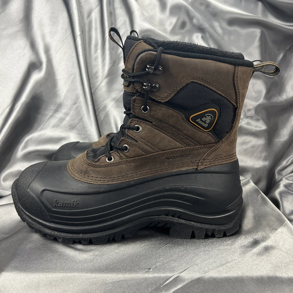 Kamik Men's Snow Boots Size 9 Pedigree Safety Toe Work Removable Liners Winter Brown Black Gorpcore Condition shown in photos Please make sure to view and zoom in on all photos to determine the condition of the boots. 🧼 Boots have been cleaned and sanitized to meet the platform standards Questions? Want more pics? Send a DM 🙂 📬 Ships same day or within 24/hrs! 🥳