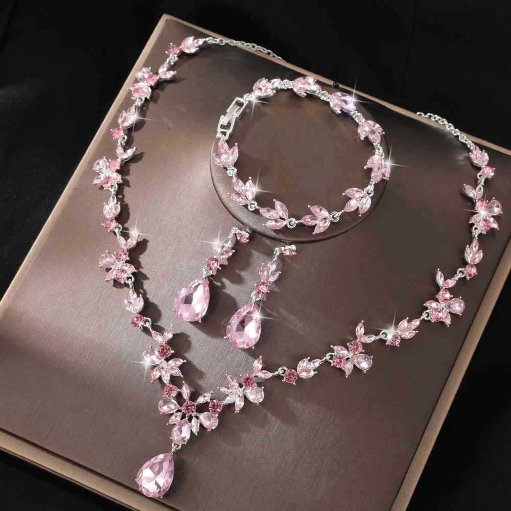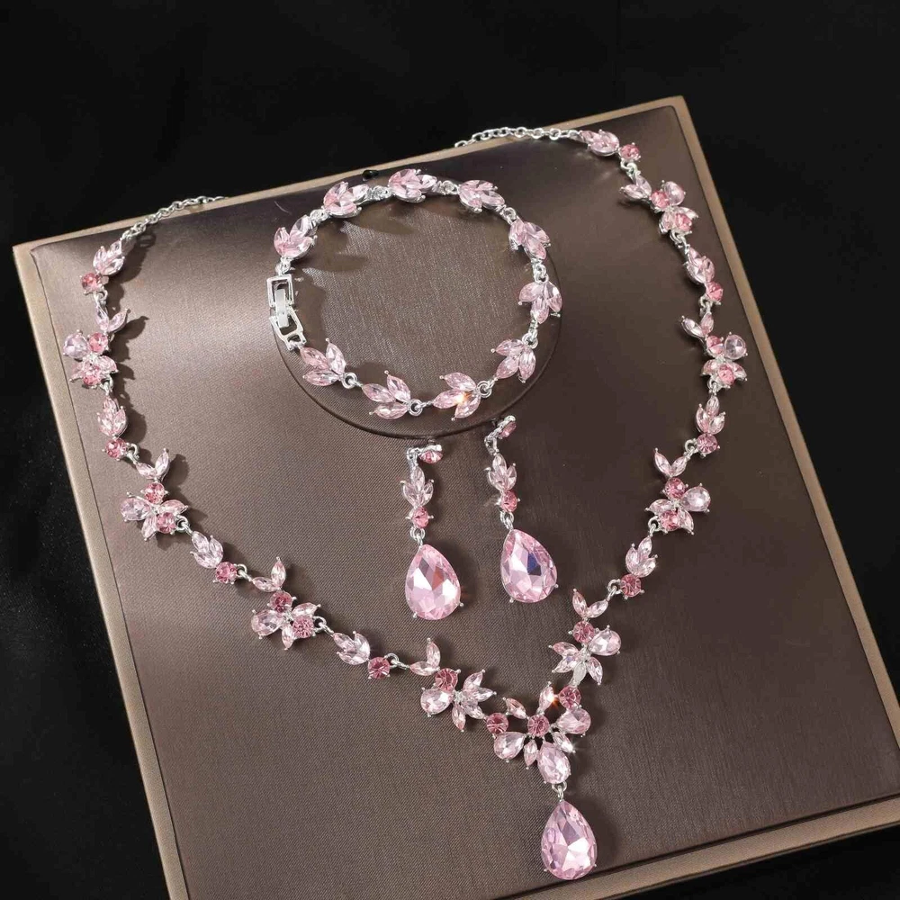 Kamirola Bridal Jewelry Set, Jewelry Set for Women, Necklace Dangle Earrings Bracelet Set, White Gold Plated Jewelry Set Product Details Color: Silver Pink Brand: Kamirola MPN: Does not apply UPC: Does not apply EAN: Does not apply Department : womens Date First Available : July 25, 2024 Manufacturer : Kamirola Brand, Seller, or Collection Name: Kamirola Metal: Zinc Material: Zinc Gem Type: Crystal Clasp: Lobster Clasp Number of stones: 6 Bridal Jewelry Set