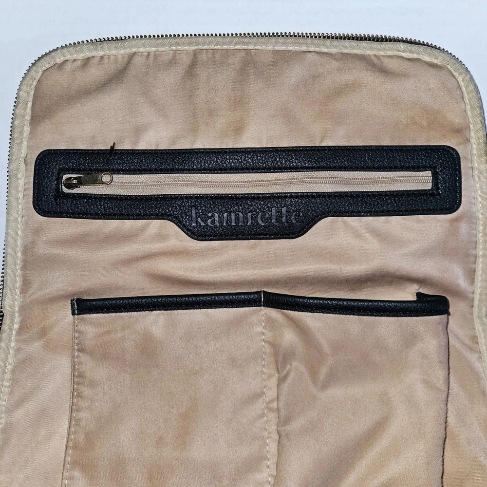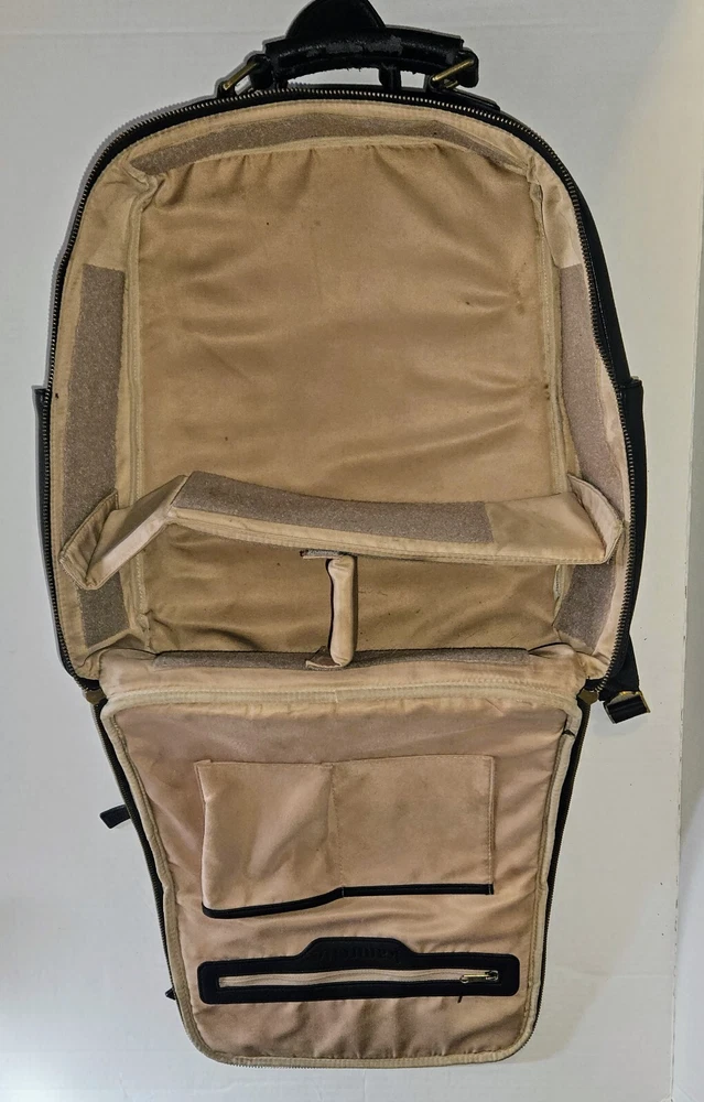 Kamrette Lyra Camera Backpack / Daypack - Black Vegan leather, Custom made, scratch resistant & easy to clean. Closed cell foam, High quality premium foam built-in for maximum protection backpack to carry your gear casually and in style. While features a slim line design, the Lyra backpack uses a clever concept to fit more than you might expect! Looks GREAT, all zippers work Great.