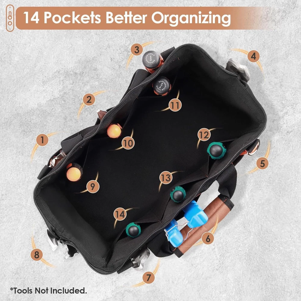8+6 Pockets: Kamtop tool bag with 8 external and 6 internal pockets, organizes your tools efficiently. It fits two cordless drills, spare batteries, drill bits and even a hammer when placed diagonally Double-layer 600D Oxford 14 Inch Tool Bag: with PVC waterproof lining and a PE embedded bottom board, this heavy-duty tool bag offers abrasion resistance, waterproofing and shock-proof performance Wide Open Mouth & Pull Zipper: Designed with a wide open mouth, internal metal frame and double-pull zipper, this tool bag ensures effortless organization and quick access to tools Kamtop Tool Bag 14"Bundle w/Snap Fastener Tool Kit 8+6 Pockets: Kamtop tool bag with 8 external and 6 internal pockets, organizes your tools efficiently. It fits two cordless drills, spare batteries, drill bits and even a hammer when placed diagonally Double-layer 600D Oxford 14 Inch Tool Bag: with PVC waterproof lining and a PE embedded bottom board, this heavy-duty tool bag offers abrasion resistance, waterproofing and shock-proof performance Wide Open Mouth & Pull Zipper: Designed with a wide open mouth, internal metal frame and double-pull zipper, this tool bag ensures effortless organization and quick access to tools Complete Snap Kit: Come with heavy duty snap fastener plier, 1 pair of gloves, 3 replaceable dies and 30 sets metal snaps (2 types, 15 sets each). Snaps are sorted in a sturdy storage box, enough quantity to perfectly meet your various DIY requirements Versatile: This snap fastener tool is multi-purpose, allowing you to easily attach snap fasteners to clothing, canvas, leather, tarpaulins, boat covers, handbags and more??ideal for giving your buttons a fresh new look 8+6 Pockets: Kamtop tool bag with 8 external and 6 internal pockets, organizes your tools efficiently. It fits two cordless drills, spare batteries, drill bits and even a hammer when placed diagonally Double-layer 600D Oxford 14 Inch Tool Bag: with PVC waterproof lining and a PE embedded bottom board, this heavy-duty tool bag offers abrasion resistance, waterproofing and shock-proof performance Wide Open Mouth & Pull Zipper: Designed with a wide open mouth, internal metal frame and double-pull zipper, this tool bag ensures effortless organization and quick access to tools Complete Snap Kit: Come with heavy duty snap fastener plier, 1 pair of gloves, 3 replaceable dies and 30 sets metal snaps (2 types, 15 sets each). Snaps are sorted in a sturdy storage box, enough quantity to perfectly meet your various DIY requirements Item Specifics Type Tool Bags Brand Kamtop About us Dear buyer, Thank you for visiting my store! Our warehouses are located in many regions around the United States. According to the customer's delivery address. Use USPS/UPS/DHL logistics transportation service. Prioritize the best quality logistics solutions to transport packages. Ensure package delivery time, At the same time. Have any after-sales problems, Feel free to contact us. At your service Payment PayPal is our preferred method of payments it's the quickest, easiest and most secure way to pay for your goods or services online. PayPal offers buyer and seller protection should there be a problem. If you do not have a PayPal account, to get started and buy your first item with us is very easy. Simply click on the 'Buy It Now' button and follow the eBay checkout steps. Select PayPal as the payment method you then will be given the chance to enter your card details in to PayPal's secure checkout in order to pay for your order. Shipping 1. Your purchase is shipped directly to you as soon as we have received your cleared payment. 2. Normally all of parcels would be shipped within 3days(From Monday to Saturday). 3. We will send information on eBay or email if the parcel was delayed due to our holiday. 4. We provide three kinds of shipping for choice. Shipping way depend on delivery address. Returns If an unit is received defective, of course we take it back or replace it. If the unit is received as expected, we must charge for our expenses if you want to send it back. We have to charge for the work of handling, retesting and restocking. DESCRIPTION PAYMENT SHIPPING RETURN POLICY CONTACT US Shop Category Store Home 000HOUSE Home-CN Other Hot Item 1-1/2 in. x 25 ft. Lay-Flat Discharge Hose Kit USD 35.10 6 in. Well Seal, 1 in. Single Drop USD 39.73 Wide-Angle Normally Closed Contact Float Switch USD 38.98 Diaphragm Pump 3.3 GPM 110V 6 ft. Height Water Submersible Pump 45 PSI 0.24 HP 1 USD 55.09 1-1/4 in. x 36 in. Well Point USD 75.99 Picture New List Item Case for Milwaukee M18 Drill&Driver: Storage Carrying Bag Tool Box for Milwaukee USD 75.99 DURASACK Heavy Duty Sand Bags w/Tie Strings Empty Woven Polypropylene Sand-Bags USD 65.99 VEEKAY 10-Pocket Electrician Tool Pouch Full Grain Leather Tool Bag Apron Tool O USD 65.13 Klein Tools 5118P5 Lineman Tool Pouch,5-Pocket and Knife Snap,Durable Leather,10 USD 76.59 Carhartt Legacy Tool Belt,Carhartt Brown USD 89.99 Help & Info Payment Policy Shipping Policy Return Policy FAQ About Us Kamtop Tool Bag 14"Bundle w/Snap Fastener Tool Kit 8+6 Pockets: Kamtop tool bag with 8 external and 6 internal pockets, organizes your tools efficiently. It fits two cordless drills, spare batteries, drill bits and even a hammer when placed diagonally Double-layer 600D Oxford 14 Inch Tool Bag: with PVC waterproof lining and a PE embedded bottom board, this heavy-duty tool bag offers abrasion resistance, waterproofing and shock-proof performance Wide Open Mouth & Pull Zipper: Designed with a wide open mouth, internal metal frame and double-pull zipper, this tool bag ensures effortless organization and quick access to tools Complete Snap Kit: Come with heavy duty snap fastener plier, 1 pair of gloves, 3 replaceable dies and 30 sets metal snaps (2 types, 15 sets each). Snaps are sorted in a sturdy storage box, enough quantity to perfectly meet your various DIY requirements Versatile: This snap fastener tool is multi-purpose, allowing you to easily atta