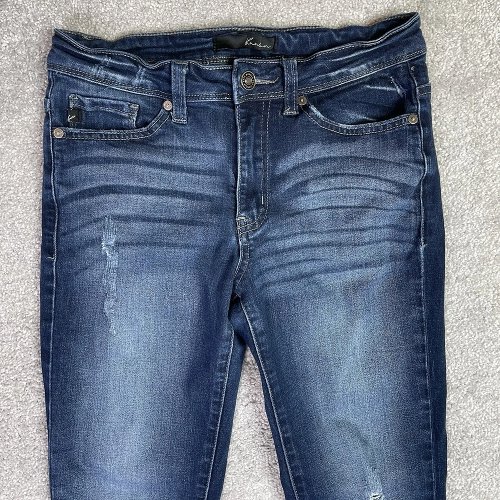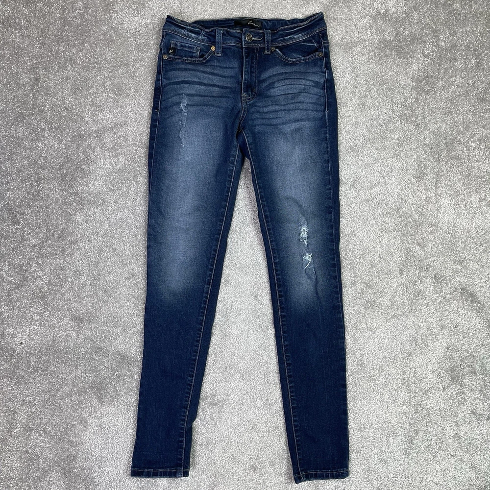 KanCan Jeans Womens 26 Blue Skinny Mid Rise Dark Denim Stretch Preppy Distressed