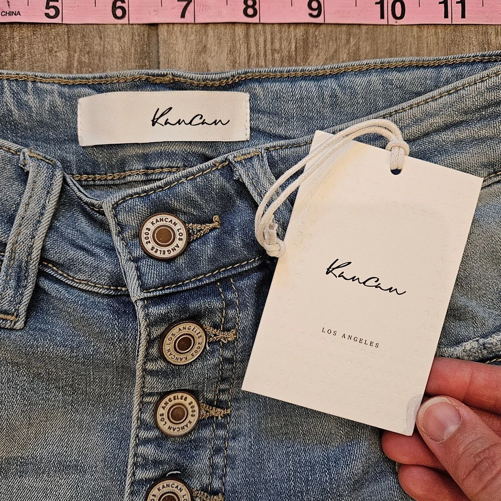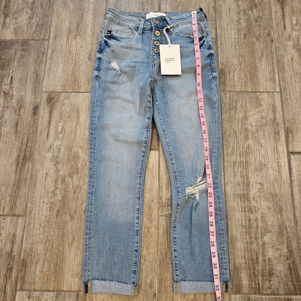 Kancan Jeans Womens 27 Cuffed Crop Capri Light Wash Distressed Button Fly NEW Measurements are included in the photos New with tags Condition Bundle for a discount or send an offer