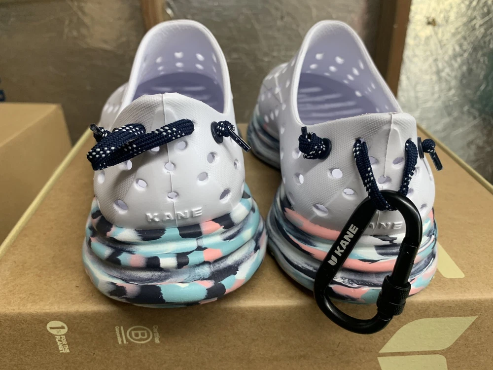 Brand new with box Men's size 10, Women's size 12 All sales are final, no returns Fast shipping! KANE Revive shoes are made of bio-based closed-cell RestoreFoam™. The shoes don’t absorb moisture, so they’re just as functional in water as they are on land, and they’re quick-drying. The KANE Revive shoes can easily be wiped or washed off with soap and water. Please avoid exposure to extreme heat or sun for this can cause the shoes to shrink or warp. Dishwashers, washing machines, or hot cars can also cause the shoes to shrink or warp. The KANE Revive sizing follows the standard sizing for a running shoe. Therefore, the size guide should be utilized according to your typical running shoe size. IN BETWEEN SIZES? We recommend sizing down (ex. if you typically wear size 10.5 - select size 10). For a wider foot, go one half size up (ex. if you typically wear size 10.5 - select size 11).