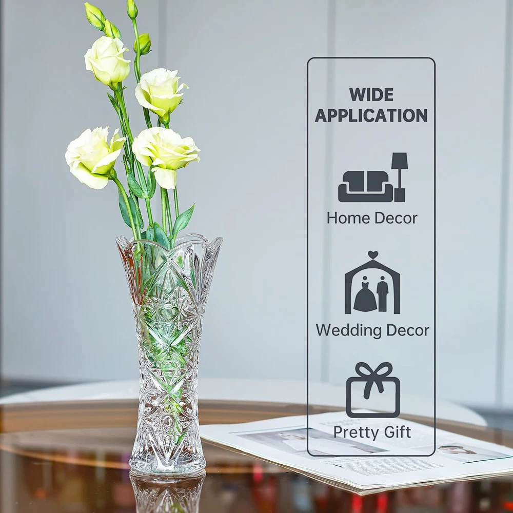 Kanpura 7.6" Clear Glass Flower Vase,Thickened Crystal Glass Vase for Flowers & Decor,Sunflower Design High Quality Flower Vase: The vase is thickened around and at the bottom, made of non-toxic, odorless, and safe high-quality glass material, durable, drop-resistant and not fragile, long service life, and more transparent than ordinary glass. For families with children, the elderly, and pets, it is safer to use vases made of this material Vase Specification: 7.6" Hx3.5 W, suitable for one flower. Not only suitable for green plants and dried flowers or artificial flowers, but also can hold water to water flowers.It is also suitable for vase filling Design and Shape: The glass vase is engraved with a gorgeous image of sunflowers, a true celebration of commitment and everlasting love. The vases are especially shiny under the lights. The glass has no sharp corners, bubbles, and wrinkles, which is safe and beautiful. Easy to clean and impact resistant Amazing Gift Idea: Very suitable for daily use, very suitable for weddings, graduation ceremonies, parties, coffee tables, dining rooms, mantel fireplaces and bathrooms, bedrooms, laundry rooms, living rooms, office decorations.Excellent gift for Christmas, Wedding, Birthday, Anniversary, Celebrations Where to Use: Not only for home decoration but also for restaurant decoration, flower shop decoration, office decoration, Home, Garden Church, Shop, Wedding, Coffee Table, Centerpieces, Dining Table, Living Room, Party Event decorations Shipping We offer FREE shipping on all orders! We use a selection of shipping services such as UPS, FedEx, USPS etc. We only ship to the lower 48 states, no APO/FPO addresses or PO Boxes allowed. Local pickups and combined shipping options are not provided at this time. Return You can return a product for up to 30 days from the date you purchased it. Any product you return must be in the same condition you received it and in the original packaging. Please keep the receipt. Payment We accept payment by any of the following methods: PayPal Please pay as soon as possible after winning an auction, as that will allow us to post your item to you sooner! Feedback Customer satisfaction is very important to us. If you have any problem with your order, please contact us and we will do our best to make you satisfied. Contact Us If you have any queries, please contact us via ebay. We usually respond within 24 hours on weekdays. Please visit our eBay store to check out other items for sale! Thank you for shopping at our store.