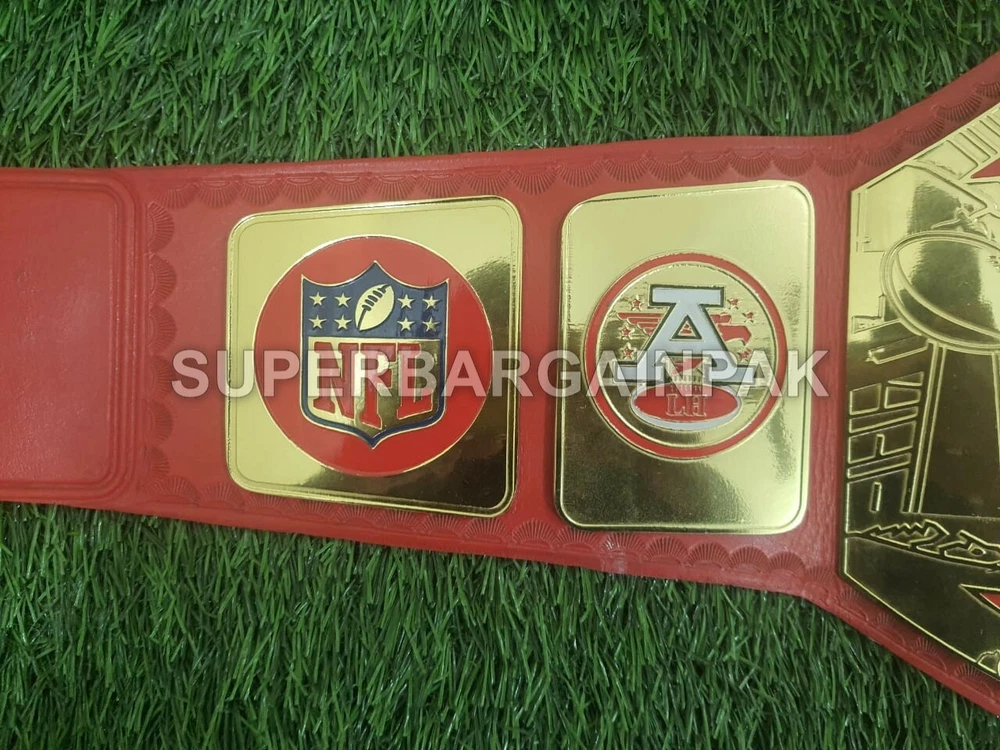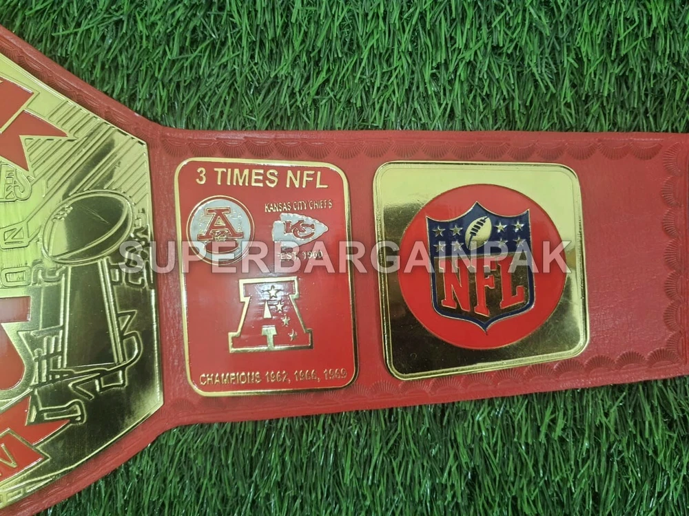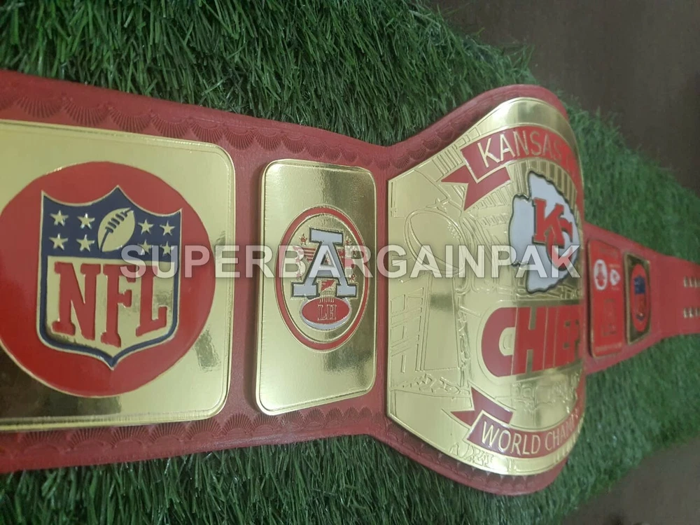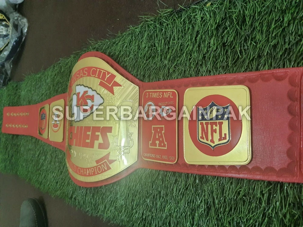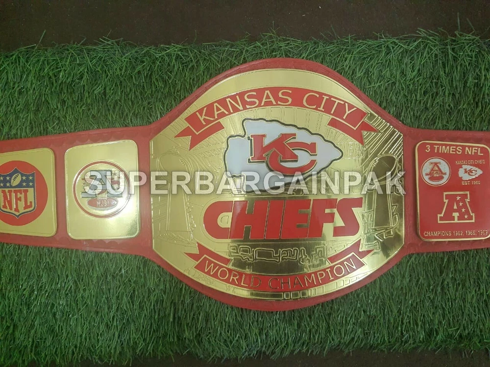 Welcome to our shop ------------------------------------------- We are specialist in manufacturing handmade products:: Our wide range of products include: >>>>Championship Belts WWE | WWF | AEW | UFC | WBC | WCW Product Description ** Kansas City Chiefs championship belt *** Plate Metal: Brass (Zinc available on request with additional cost) Strap: 100% Leather Largest Waist Size: Fits upto 46'' Belt Length: ~50" Weight: 4.17 lbs | 2.01 Kg Plate Thickness: 2mm (4mm Version available on demand with additional cost) ::The belt is well crafted and manufactured to meet the quality demands of fans:: Get your hands on this marvelous piece now! Note: If you need further details kindly inbox us, we will try to be as responsive as possible. ------------------------------------------- Return Policy: Generally we don't have much complains on our products and we make sure to 100% satisfy our clients. We send the product in well Bubble Wrapped packaging so there is highly unlike chance of getting damaged item. In case there is a damage, we will try to give partial refund or you can ask for full refund within 30 days after returning the belt to origin. NOTE: 1. If you have placed the order by mistake or you have purchased a wrong item then we are not going to refund that. 2. Buyer will pay the shipping fee of returning the belt. ------------------------------------------- Happy Shopping! :)