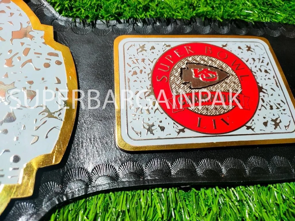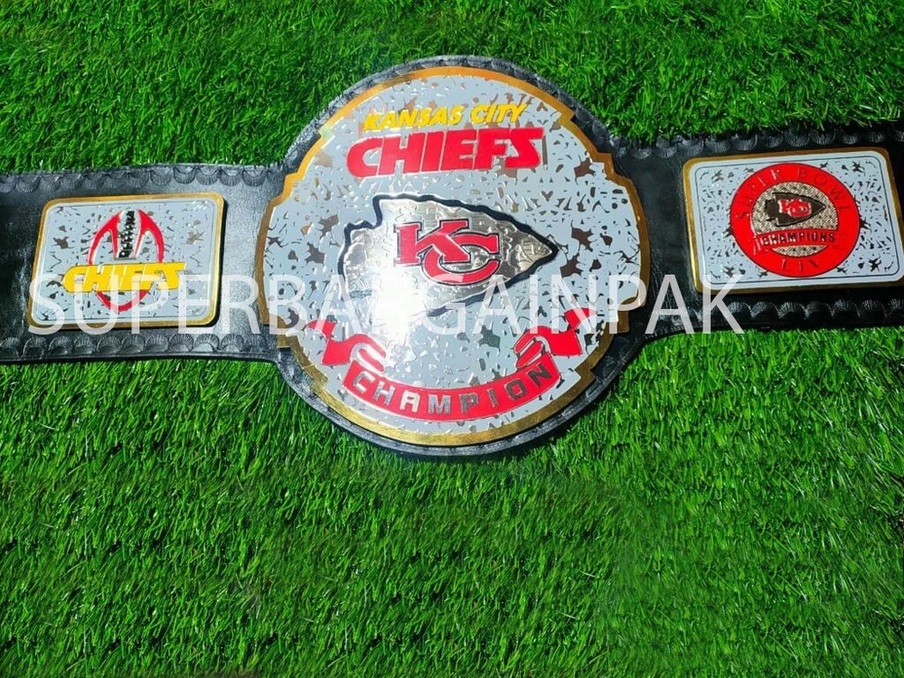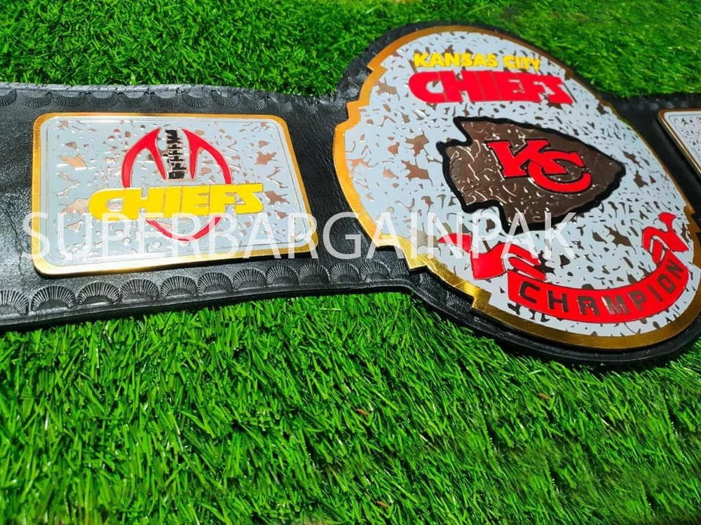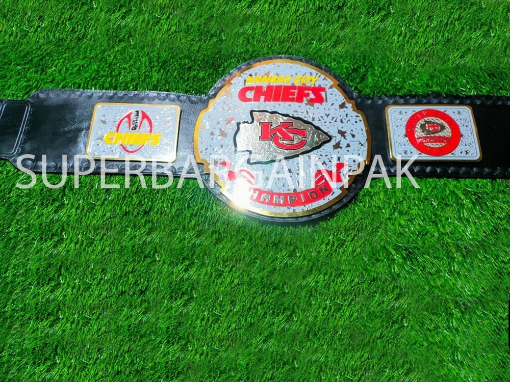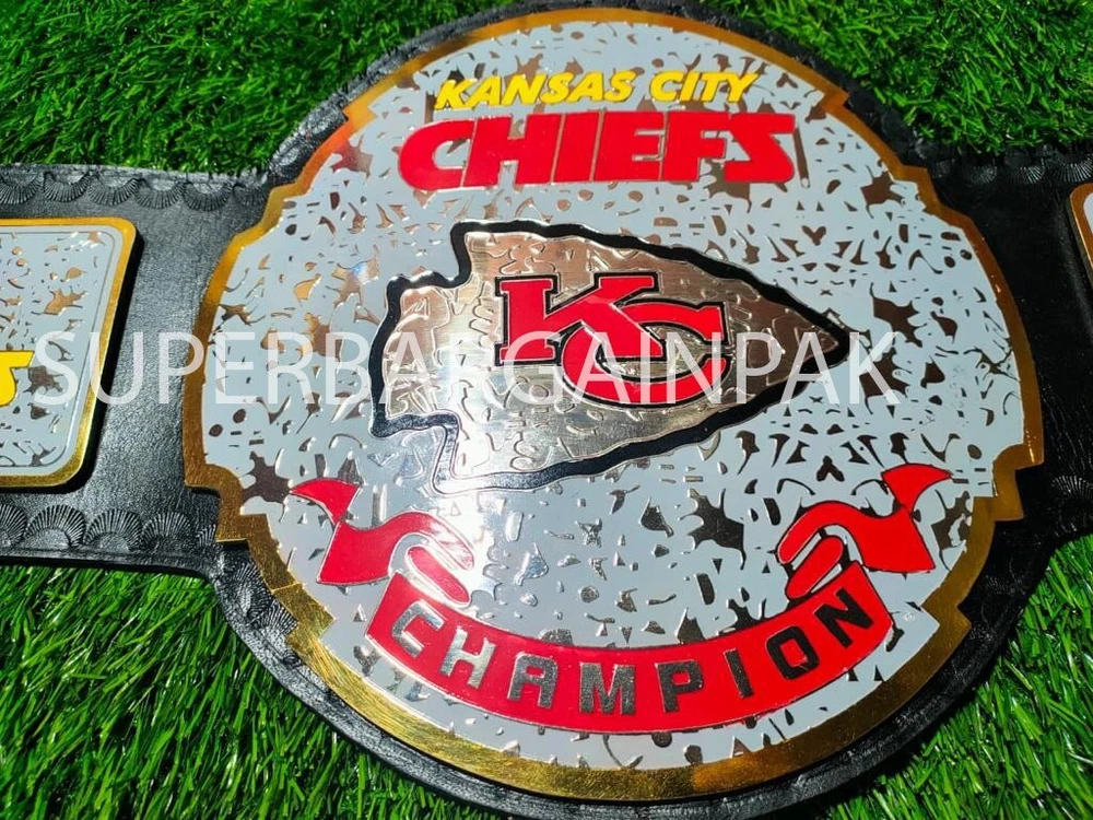 Welcome to our shop ------------------------------------------- We are specialist in manufacturing handmade products:: Our wide range of products include: >>>>Championship Belts WWE | WWF | AEW | UFC | WBC | WCW Product Description ** Kansas City Chiefs championship belt *** Plate Metal: Brass (Zinc available on request with additional cost) Strap: 100% Leather Largest Waist Size: Fits upto 46'' Belt Length: ~50" Weight: 6.17 lbs | 2.81 Kg Plate Thickness: 2mm (4mm Version available on demand with additional cost) ::The belt is well crafted and manufactured to meet the quality demands of fans:: Get your hands on this marvelous piece now! Note: If you need further details kindly inbox us, we will try to be as responsive as possible. ------------------------------------------- Return Policy: Generally we don't have much complains on our products and we make sure to 100% satisfy our clients. We send the product in well Bubble Wrapped packaging so there is highly unlike chance of getting damaged item. In case there is a damage, we will try to give partial refund or you can ask for full refund within 30 days after returning the belt to origin. NOTE: 1. If you have placed the order by mistake or you have purchased a wrong item then we are not going to refund that. 2. Buyer will pay the shipping fee of returning the belt. ------------------------------------------- Happy Shopping! :)