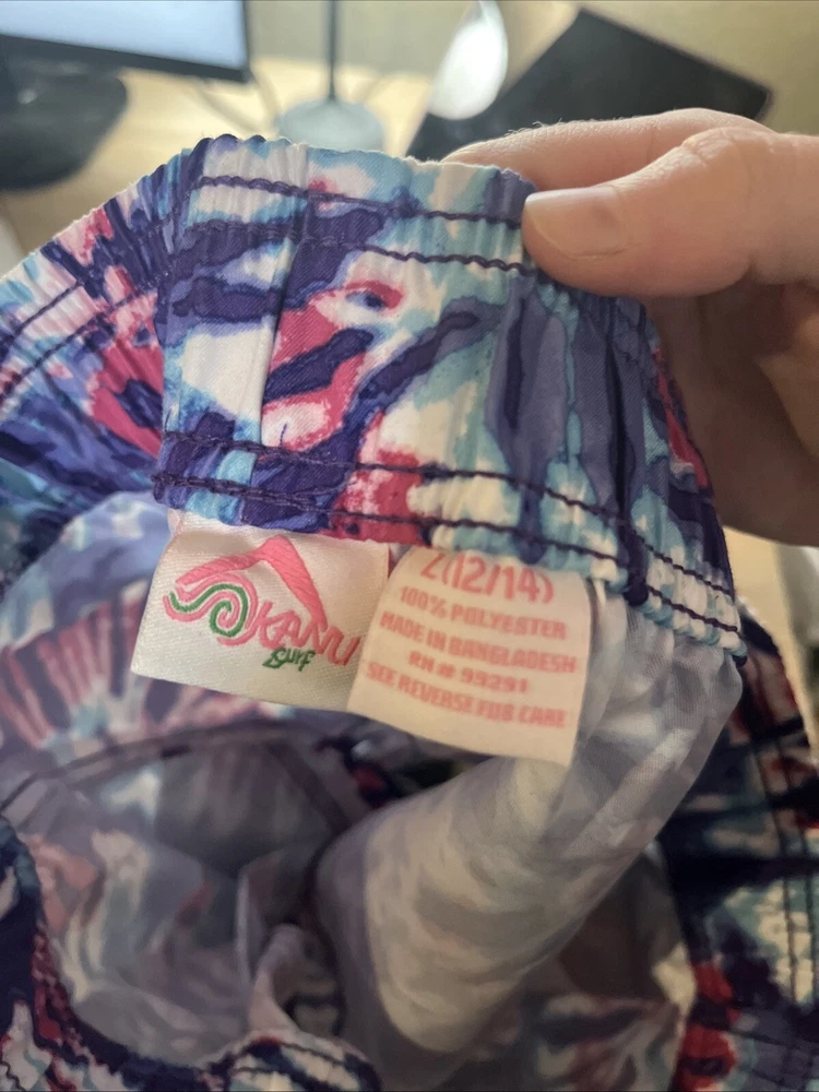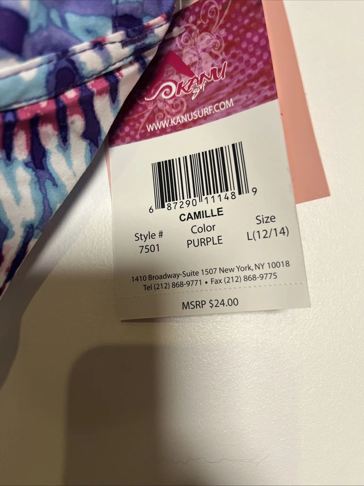 Kanu Surf Swimsuit Girls L(12/14) Blue Purple Board Shorts Camille Tie Dye Boho. Condition is New with tags. Shipped with USPS Ground Advantage.