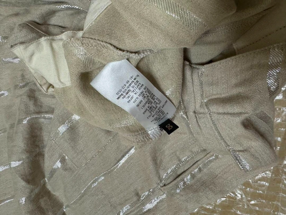 Waist Size: 28.3 in Material: Cotton Pocket Type: NA Features: Pockets Country/Region of Manufacture: Japan Size Type: Regular Closure: NA Leg Style: NA gtin13: Does not apply Product Line: NA Size: 1 Handmade: No Fit: Slim Department: Men MPN: NA Rise: 12.5 in Pattern: Striped Season: Fall, Spring, Winter Vintage: No Garment Care: NA Type: Pants Style: Chino Brand: Kapital Theme: NA UPC: Does not apply Accents: Glitter Fabric Type: NA Inseam: 19.6 in Personalize: No Occasion: Business, Casual, Travel Color: Beige Model: NA