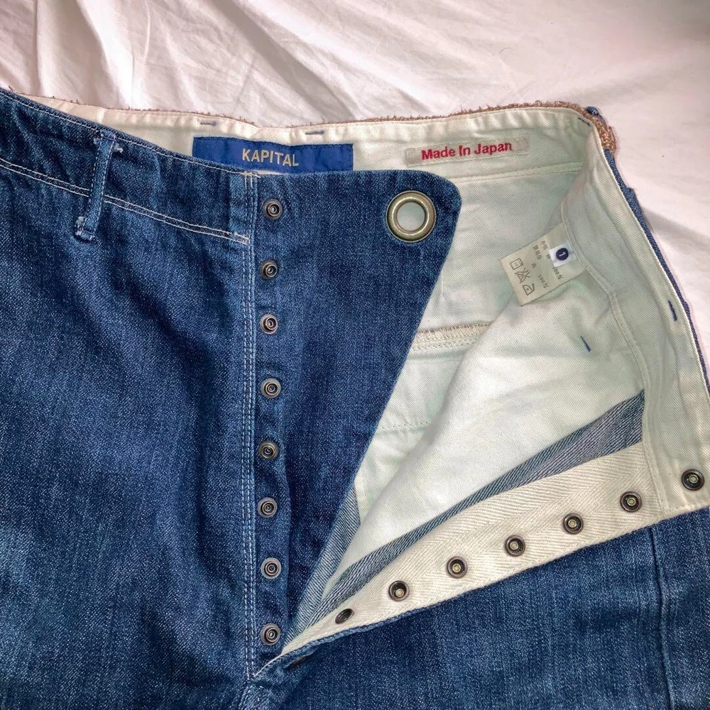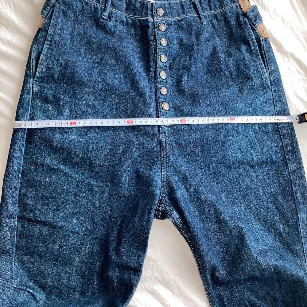 Garment Care: NA Vintage: No Size: 1 Rise: 17.3 in Type: Pants Size Type: Regular Fit: Slim Waist Size: 28.3 in Department: Men Material: Cotton, Linen Closure: Button Accents: Button Color: Blue Style: Denim Features: Pockets Personalize: No Inseam: NA UPC: Does not apply Model: NA gtin13: Does not apply Theme: NA Pattern: NA Handmade: No Pocket Type: NA Occasion: Business, Casual, Travel Product Line: NA MPN: NA Leg Style: NA Season: Fall, Spring, Winter Fabric Type: Denim Brand: Kapital