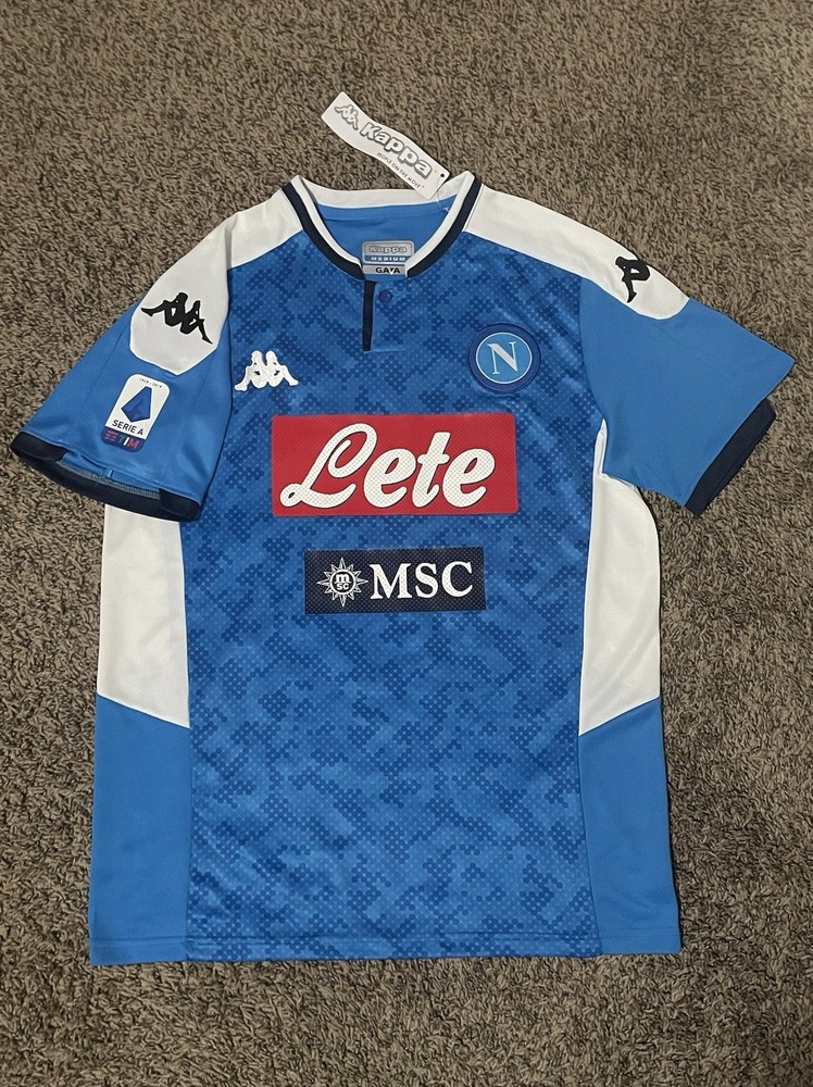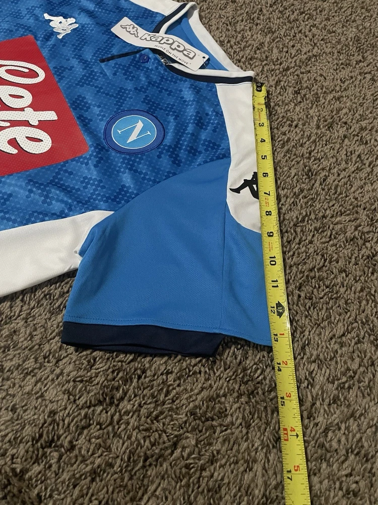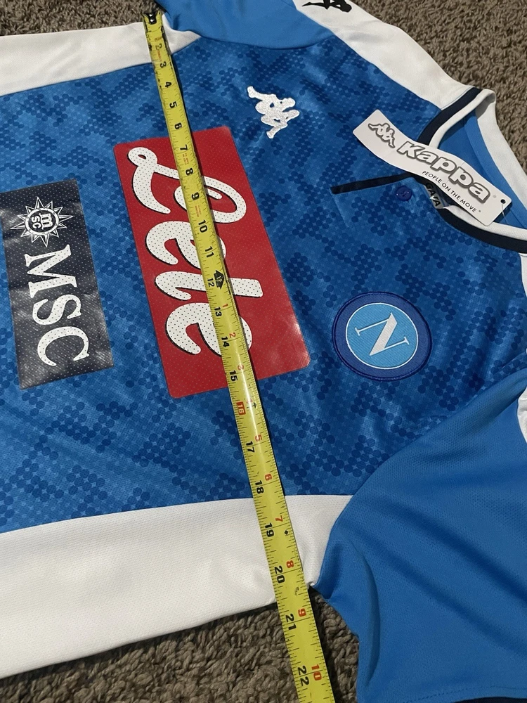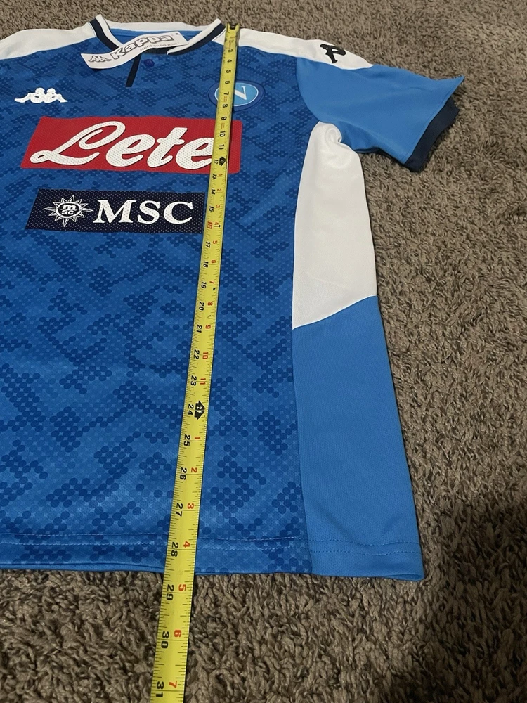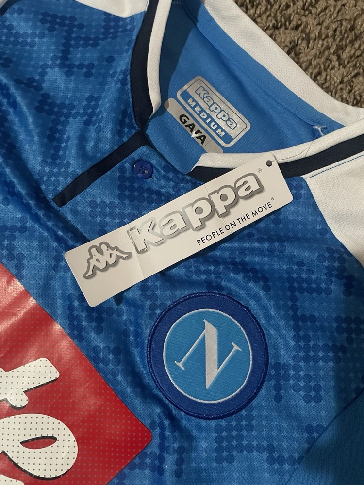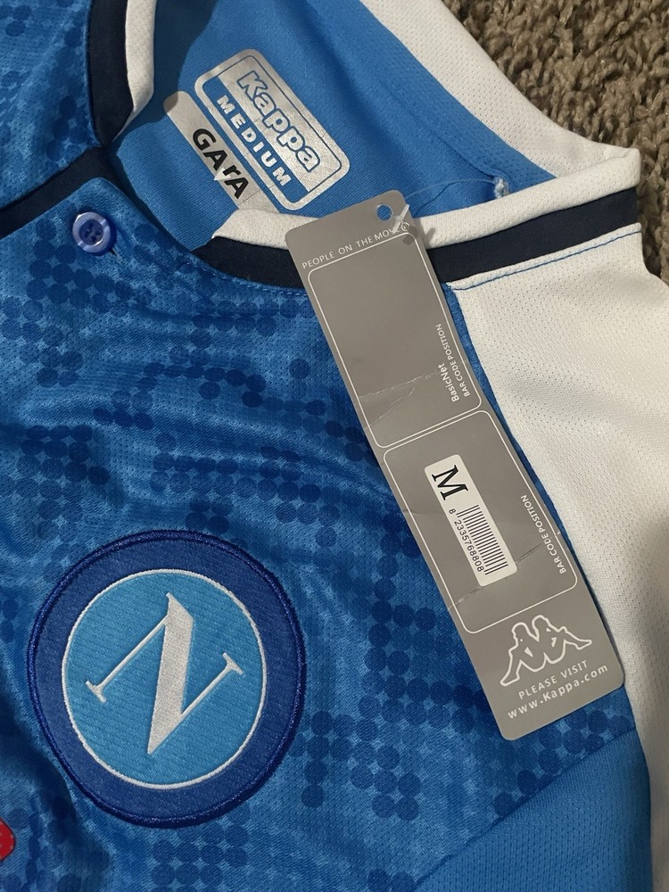 The product is an authentic Kappa SSC Napoli 2019-2020 home soccer jersey in size M, complete with shorts. This officially licensed jersey features the team's colors, blue, and represents player Gonzalo Higuain. Designed for men fans of Napoli, this jersey is a must-have for any soccer enthusiast looking to support their favorite team in style. No flaws, feel free to ask any questions. Accepting reasonable offers.