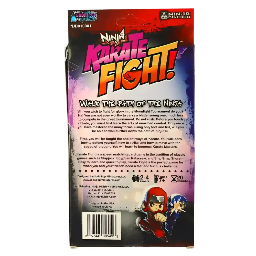Karate Fight! Ninja All Stars - Card Game - Soda Pop Miniatures Condition: New Step into the sacred halls of the elemental shrine in "Karate Fight! Ninja All Stars," a dynamic card game from Soda Pop Miniatures. Immerse yourself in the ancient art of ninja combat as you train to master the deadly hand-to-hand techniques of Karate. From self-defense maneuvers to precision strikes and lightning-fast movements, you'll learn the secrets to becoming a true ninja, moving with the speed of thought. "Karate Fight" introduces a thrilling speed-matching card game reminiscent of classic titles like Slapjack, Egyptian Ratscrew, and Snip Snap Snorem. With an easy-to-learn and quick-to-play format, it provides the perfect platform for a fast and intense challenge among friends. Published by Soda Pop Miniatures and part of the Takoashi University product line, this game promises an immersive experience where strategy and speed converge. Are you ready to embark on a journey of ninja mastery and engage in a furious, high-speed showdown with your fellow players? "Karate Fight! Ninja All Stars" awaits, offering a perfect blend of excitement and skill in every round.