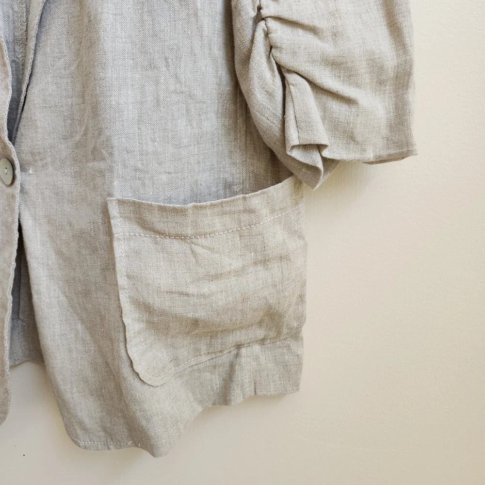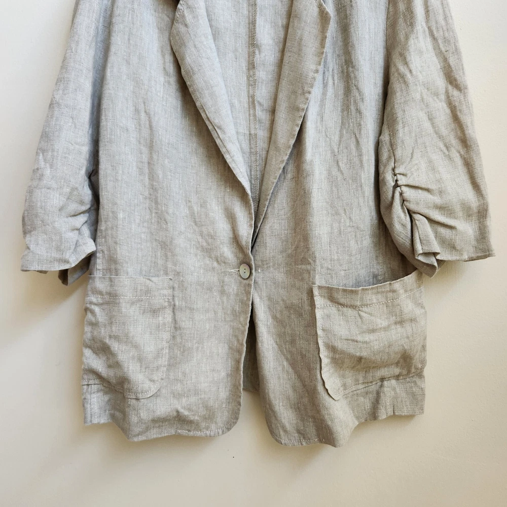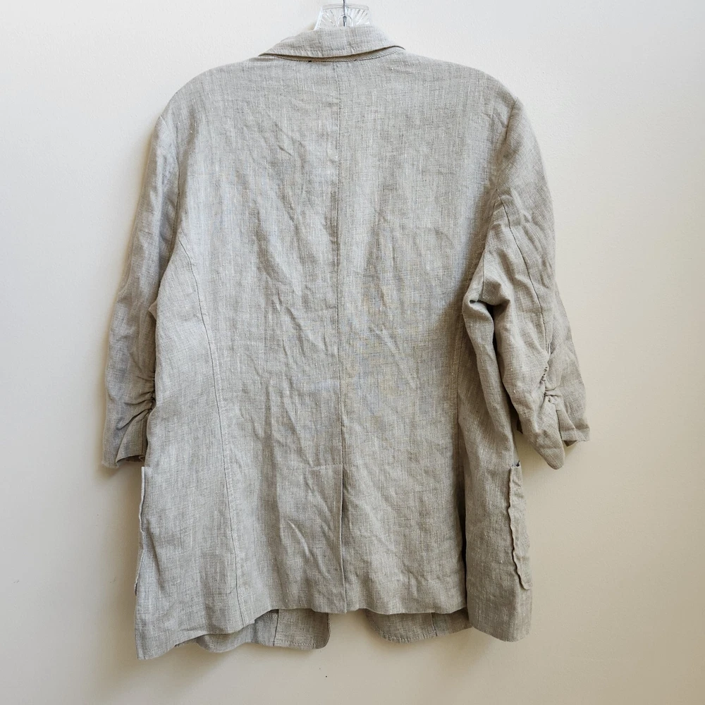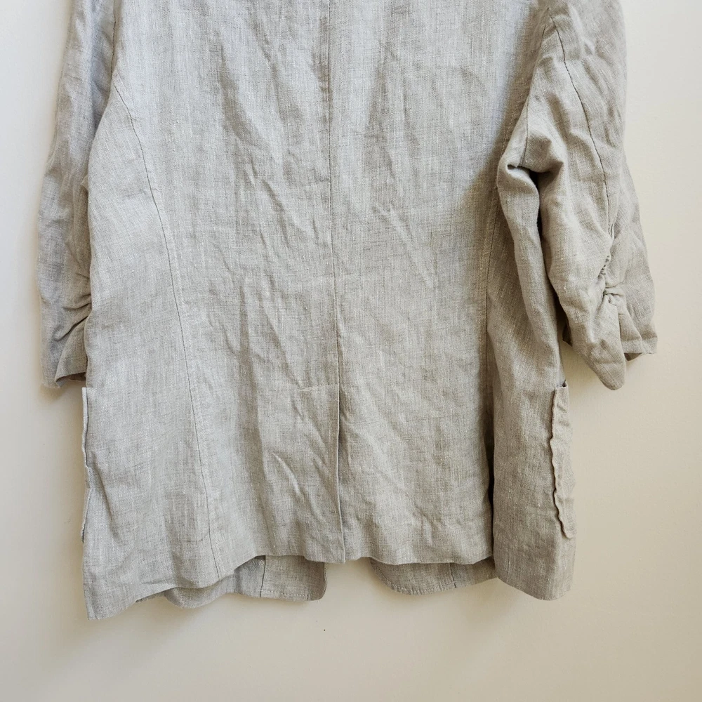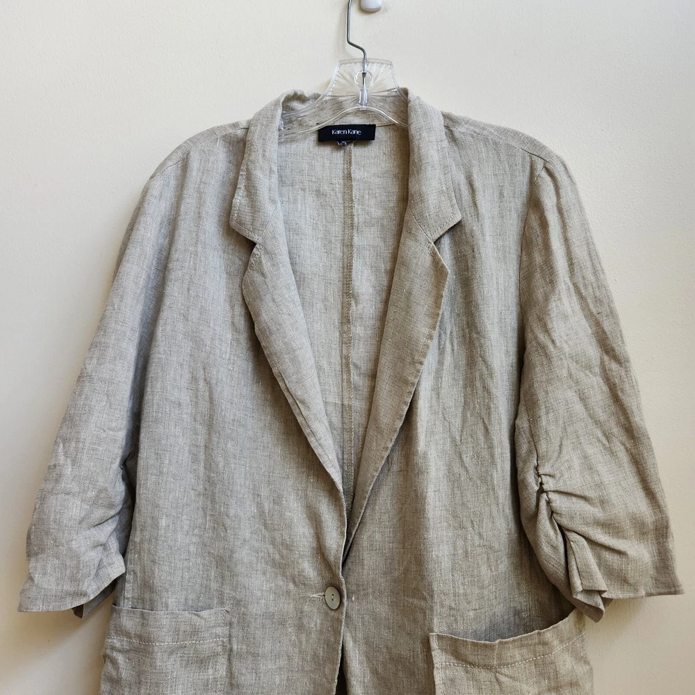 Karen Kane Jacket Women's L Beige Heather Linen Button Front Minimalist Capsule - Pre-Owned - No Size Tag, Estimated Size Large, See Measurements in Photos to Confirm Sizing. In Very Good Condition - Returns acceptable within 30 days of purchase unworn, in original condition - Check out my E-bay Store. Lots of Choices Available. Reduced shipping for 2 or more items. Let me know before you pay so I can send you an invoice to discount the shipping