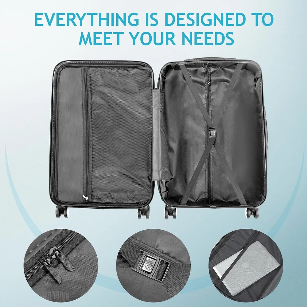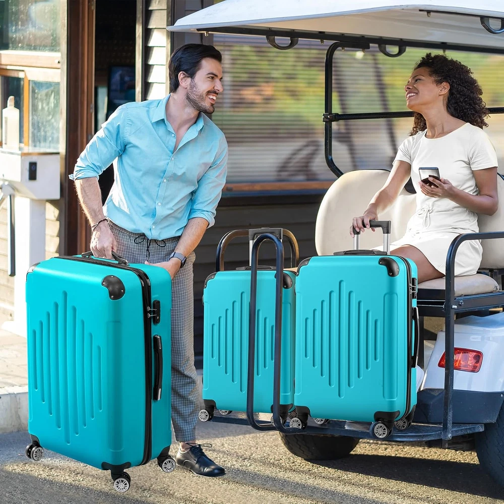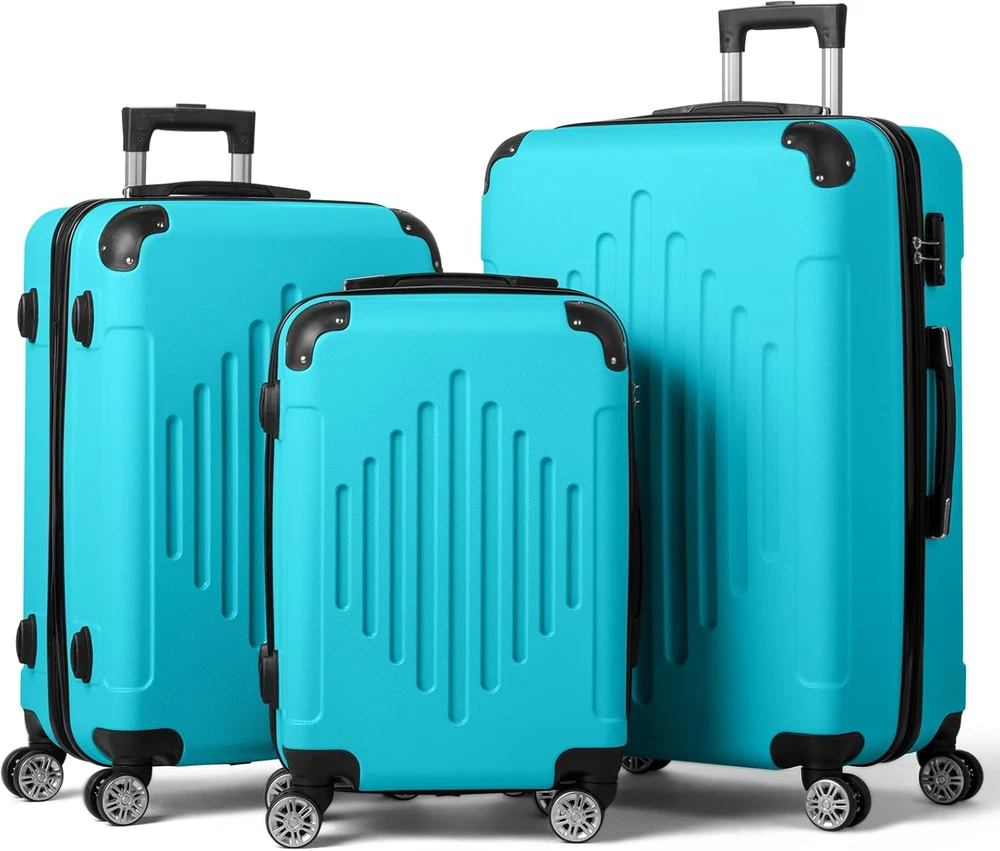 Store New Arrivals Add to Favorite View Feedback Contact Karl Home Luggage Set 3 Piece Suitcase Sets with TSA Lock Moulded Corner 4 Spinner Wheels, ABS Hardside Trolley Travel Case for Carry on Check-In Business Trip, Sky Blue 20" 24" 28" Description Color Sky Blue Product Dimensions 11 x 18.9 x 29.5 inches Country of Origin China Item Weight 23.36 Pounds Department Unisex Adult Manufacturer Karl home 【TSA Lock】Features a TSA combination lock on the side, ensuring your belongings are safe and secure during your travels. Additionally, 4 molded side feet that allow you to store it upright when needed 【Effortless Mobility】This luggage set offers smooth maneuverability with 4 360° silent sliding rollers and a retractable handle. An additional side handle ensures easy lifting and hassle-free travel 【Organized & Spacious】With two large compartments, a mesh zippered compartment, and cross straps, our luggage set provides ample storage and organization for your clothes, shoes, and other essentials 【Durable Materials】Crafted from sturdy ABS material with 2 molded corners and a black full liner, our luggage set is resistant to scratches, pressure, and water. It's also lightweight and easy to clean, making it a practical choice for all your travel needs 【Demision】Here are the dimensions for each size of the luggage set: - 20 inch: 21.7" x 13.8" x 8.7", 38L, 5.29lbs, for 1-4 days travel - 24 inch: 25.6" x 15.8" x 10.2", 60L, 6.83lbs, for 4-7 days travel - 28 inch: 29.5" x 18.9" x 11", 93L, 8.16lbs, for 7+ days travel Product Description Karl home 3-Piece Luggage Set Material: ABS Caster Diameter: 1.97" 20 inch : 21.7" x 13.8" x 8.7", 38L, 5.29lbs, for 1-4 days travel 24 inch : 25.6" x 15.8" x 10.2", 60L, 6.83lbs, for 4-7 days travel 28 inch : 29.5" x 18.9" x 11" , 93L, 8.16lbs, for 7+ days travel More Choices Add to Cart Add to Cart Add to Cart Add to Cart Add to Cart Add to Cart Add to Cart Customer Reviews 3.8 out of 5 stars 601 3.9 out of 5 stars 1,273 3.8 out of 5 stars 601 3.8 out of 5 stars 601 3.6 out of 5 stars 137 3.6 out of 5 stars 137 3.6 out of 5 stars 137 Price $99.99 $ 99 . 99 $99.99 $ 99 . 99 $95.99 $ 95 . 99 $99.99 $ 99 . 99 $69.99 $ 69 . 99 $65.99 $ 65 . 99 $99.99 $ 99 . 99 TSA Lock ✔ ✔ ✔ ✔ ✔ ✔ ✔ Double Spinner Wheels ✔ ✔ ✔ ✔ ✔ ✔ ✔ Material ABS ABS ABS ABS ABS ABS ABS Color Black Grey Rose Gold Orange Blue Purple Purple Size 20"24"28" 20"24"28" 20"24"28" 20"24"28" 20"24"28" 20"24"28" 16"20"24"28" Number of Pieces 3 3 3 3 3 3 4 ABOUT US We offer the best prices around on high quality products. Our E-store includes media such as books, movies, music and games while offering electronics, toys, sporting apparel, clothing, tools, general home, garden items and more. SHIPPING We are always working hard to ensure your package arrives as soon as possible. Please understand that some factors like weather, high postal traffic, and the performance of shipping companies are outside of our control. We offer free shipping to the lower 48 states and ship within 2 business days of payment, usually sooner. We do not accept P.O. Boxes. Please provide a physical address. RETURNS We offer a 30-Day Return Policy on items which you are not completely satisfied with. You have the option for a full-refund or an exchange of the item. No returns are available on items shipped outside of the USA. PAYMENT We accept PayPal. CONTACT US This page content is yet to come Please ad us to your favorite seller and visit again later Thank You CUSTOMER SATISFACTION We try our very best to make sure every customer is completely satisfied. If there's a problem, message us! We're happy to help.