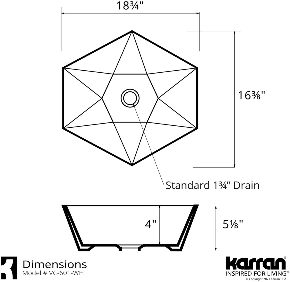 Powered by Frooition Top Products Kitchen Bathroom Lighting Fans Hardware Decor & Organization Karran USA VC-601 Valera 18-3/4" Hexagonal Vitreous China Vessel Bathroom Sink Overview Item Description Karran's Valera Collection comprises a wide array of elegant models that include undermount sinks, top mount sinks. and vessel sinks. These vitreous China bathroom sinks feature a durable double glaze that is stain, scratch, and scuff resistant. All models in the Valera Collection are easy to clean and care for. Consider them the perfect choice for any residential or commercial bathroom project. Pair your Valera sink with a Karran bathroom faucet. Shorter faucets are suitable for undermount and top mount sinks. Select a taller faucet for all vessel sink installations. Karran USA VC-601 Features: Covered under Karran's 25 year limited warranty Constructed of vitreous China Coordinates with products from the Valera line Vessel installation Center drain location provides optimal draining capability Overflow not included ADA compliant Karran VC-601 Specifications: Overall Length: 18-3/4" (left to right of sink) Overall Width: 16-3/8" (front to back of sink) Overall Height: 5-1/8" (top to bottom of sink) Basin Length: 17-3/4" (left to right of basin) Basin Width: 15-3/8" (front to back of basin) Basin Depth: 4" (top to bottom of basin) Drain Connection Size: 1-3/4" Number of Faucet Holes: 0 Minimum Cabinet Size: 21" Why Choose BuildInc? OUR PROMISE TO YOU About Us At Build, we promise to provide the best selection we can, most competitive pricing, and unmatched customer service. Our store has quality home improvement products from trusted manufacturers like Moen, American Standard, Delta, Kraus, Kichler, Progress Lighting, Schlage, Kwikset, Baldwin, Broan, NuTone, Air King, and Rev-A-Shelf. With over 200,000 home improvement products for you to choose from, we have just what you need to get your project done. Fast & Free Shipping We promise to make it our priority to get you your items as fast as we can. We ship from 440 warehouses around the country, ensuring that your product will get to you as soon as possible. We know you're eager to get your hands on your new purchase, we would be too. As a bonus, most items ship for free. Returns We are happy to accept returns of unused or defective items for a refund within 30 days from the date of delivery. For returns outside 30 days, please contact our Customer Service team to go over our options. For full details, please view the Shipping and Payments tab above. To initiate a return simply go to the eBay Returns Portal and submit a return request. We ask that all items be returned with all original components via a traceable method. Once your return is received and processed, we will quickly get your refund or replacement issued. If for any reason you are unsatisfied with your purchase or for product or warranty questions, please contact Customer Service team for assistance. More Items! View more great items Karran USA SQS200 Sternhagen 21-1/2" Rectangular Quartz Composite $299.00 Karran USA VC-506 Valera 24-1/4" Rectangular Vitreous China - White $170.00 Karran USA QM172 Quattro Matte 18" Rectangular Acrylic Vessel - White $140.28 Karran USA VC-428 Valera 18-1/4" Circular Vitreous China Vessel - White $145.83 About Us | Shipping | Returns | Contact Us | FAQ | Collections | Special Offers! Powered by Frooition Frooition Frooition | No-js Template | eBay design, eBay store design, eBay shop design, eBay template design, eBay listing design (ver:froo_no_js) This listing is currently undergoing maintenance, we apologize for any inconvenience caused.