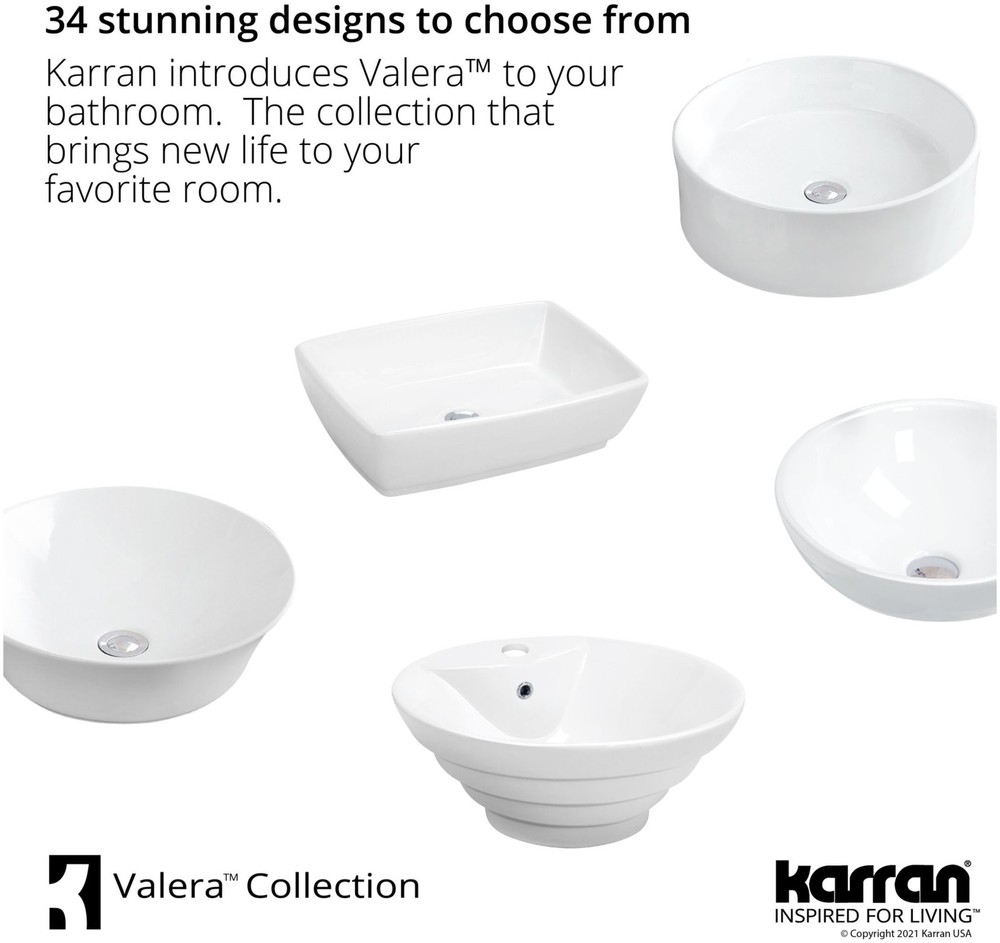 Powered by Frooition Top Products Kitchen Bathroom Lighting Fans Hardware Decor & Organization Karran USA VC-428 Valera 18-1/4" Circular Vitreous China Vessel Bathroom Sink Overview Item Description Karran's Valera Collection comprises a wide array of elegant models that include undermount sinks, top mount sinks. and vessel sinks. These vitreous China bathroom sinks feature a durable double glaze that is stain, scratch, and scuff resistant. All models in the Valera Collection are easy to clean and care for. Consider them the perfect choice for any residential or commercial bathroom project. Pair your Valera sink with a Karran bathroom faucet. Shorter faucets are suitable for undermount and top mount sinks. Select a taller faucet for all vessel sink installations. Karran USA VC-428 Features: Covered under Karran's 25 year limited warranty Constructed of vitreous China Coordinates with products from the Valera line Vessel installation Center drain location provides optimal draining capability Overflow not included ADA compliant Karran VC-428 Specifications: Overall Length: 18-1/4" (left to right of sink) Overall Width: 18-1/4" (front to back of sink) Overall Height: 5-7/8" (top to bottom of sink) Basin Length: 17" (left to right of basin) Basin Width: 17" (front to back of basin) Basin Depth: 4" (top to bottom of basin) Drain Connection Size: 1-3/4" Number of Faucet Holes: 0 Minimum Cabinet Size: 21" Why Choose BuildInc? OUR PROMISE TO YOU About Us At Build, we promise to provide the best selection we can, most competitive pricing, and unmatched customer service. Our store has quality home improvement products from trusted manufacturers like Moen, American Standard, Delta, Kraus, Kichler, Progress Lighting, Schlage, Kwikset, Baldwin, Broan, NuTone, Air King, and Rev-A-Shelf. With over 200,000 home improvement products for you to choose from, we have just what you need to get your project done. Fast & Free Shipping We promise to make it our priority to get you your items as fast as we can. We ship from 440 warehouses around the country, ensuring that your product will get to you as soon as possible. We know you're eager to get your hands on your new purchase, we would be too. As a bonus, most items ship for free. Returns We are happy to accept returns of unused or defective items for a refund within 30 days from the date of delivery. For returns outside 30 days, please contact our Customer Service team to go over our options. For full details, please view the Shipping and Payments tab above. To initiate a return simply go to the eBay Returns Portal and submit a return request. We ask that all items be returned with all original components via a traceable method. Once your return is received and processed, we will quickly get your refund or replacement issued. If for any reason you are unsatisfied with your purchase or for product or warranty questions, please contact Customer Service team for assistance. More Items! View more great items Karran USA SQS200 Sternhagen 21-1/2" Rectangular Quartz Composite $363.72 Karran USA VC-506 Valera 24-1/4" Rectangular Vitreous China - White $170.00 Karran USA VC-501 Valera 18-3/4" Rectangular Vitreous China - White $114.24 Karran USA QM172 Quattro Matte 18" Rectangular Acrylic Vessel - White $140.28 About Us | Shipping | Returns | Contact Us | FAQ | Collections | Special Offers! Powered by Frooition Frooition Frooition | No-js Template | eBay design, eBay store design, eBay shop design, eBay template design, eBay listing design (ver:froo_no_js) This listing is currently undergoing maintenance, we apologize for any inconvenience caused.