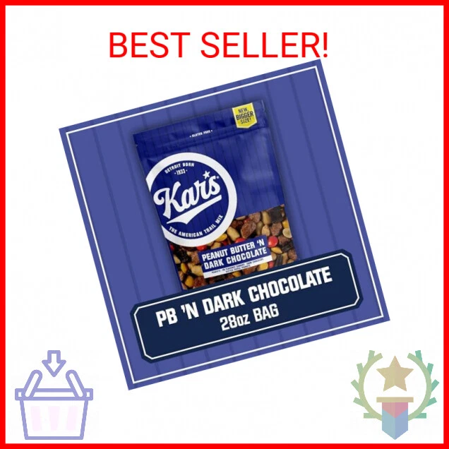 Kar’s Nuts Peanut Butter ‘n Dark Chocolate Trail Mix, 28 oz – Resealable Pouch (Pack of 1), Gluten-Free Snack Mix - TRAIL MIX SNACKS – Satisfy every craving with Kar’s Nuts Peanut Butter ‘n Dark Chocolate Trail Mix bag. There is (1) 28 oz resealable pouch of chocolate and nut snacks included for ultimate freshness. - PEANUT BUTTER ‘N DARK CHOCOLATE – Two of America’s favorite flavors come together in Kar’s Peanut Butter ‘N Dark Chocolate snacks which features gently roasted peanuts, crunchy peanut butter flavored candies, rich dark chocolate, & butter toffee peanuts. - GLUTEN-FREE – Kar’s Nuts trail mix varieties are gluten-free and free of hydrogenated oils and trans fats. It is also certified Kosher! You can feel good about enjoying it and sharing with your friends and family. - STAYS FRESH – Our conveniently packaged nut mix will leave you satisfyingly full. They’re great for travel snacks, kids’ lunches, concessions, office breakrooms and more. - KAR’S NUTS – Since our humble beginnings, Kar’s Nuts has become a nationwide sensation—and it all started with good ol’ roasted peanuts. You could say we pioneered the Sweet ‘N Salty Nut Snack Mix movement, and if you did, you’d be right. The Fine Print Payments We accept the following payment methods Visa/Mastercard PayPal Apple Pay Google Pay Please pay as soon as possible after winning an auction, this will allow for quicker shipping times! Returns We accept returns . You can return unopened items in the original packaging within 30 days of your purchase with receipt or proof of purchase . If 30 days or more have passed since your purchase , we cannot offer you a refund or an exchange . Upon receipt of the returned item , we will fully examine it and notify you via email , within a reasonable period of time , whether you are entitled to a return . If you are entitled to a return , we will refund your purchase price, and a credit will automatically be applied to your original method of payment . Only regular priced items may be refunded . Sale items are non -refundable . Buyer is responsible for return shipping costs + a 20% restocking fee. Shipping Shipment processing time All orders are processed within 2-3 business days. Orders are not shipped or delivered on weekends or holidays. If we are experiencing a high volume of orders, shipments may be delayed by a few days. Please allow additional days in transit for delivery. If there will be a significant delay in shipment of your order, we will contact you via email or telephone. Shipping rates & delivery estimates Shipping charges for your order will be calculated and displayed at checkout.