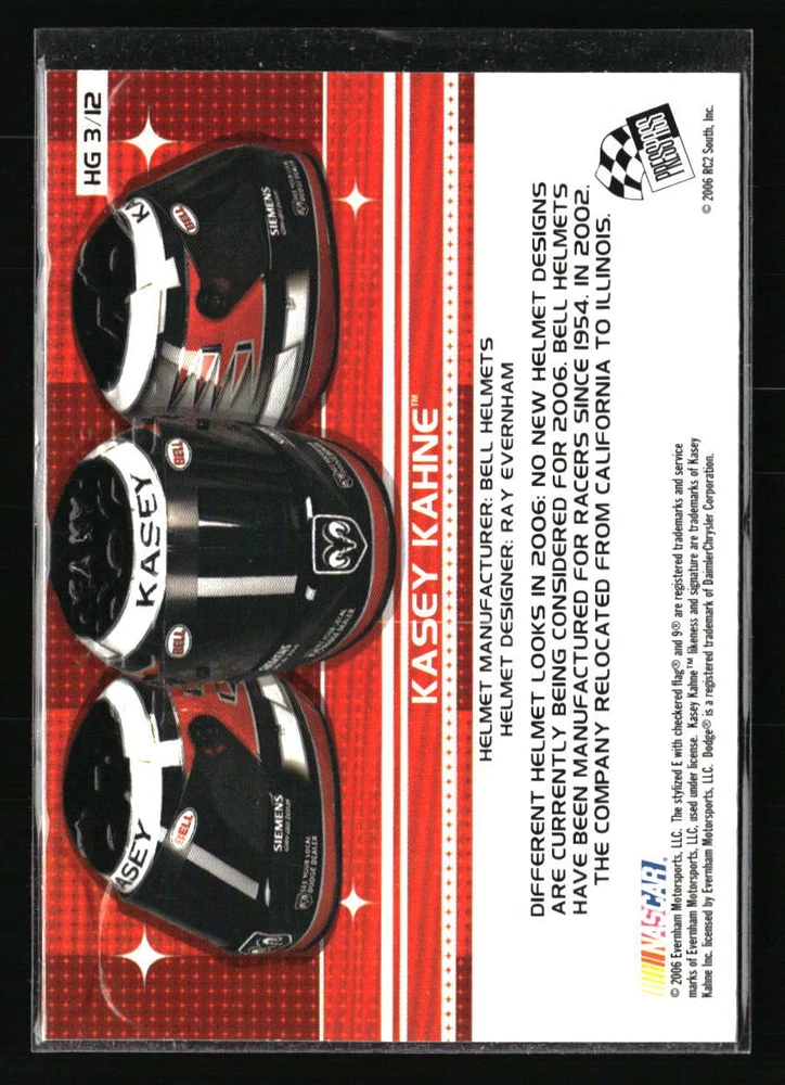 Kasey Kahne 2006 VIP Head Gear #HG3 Racing Card