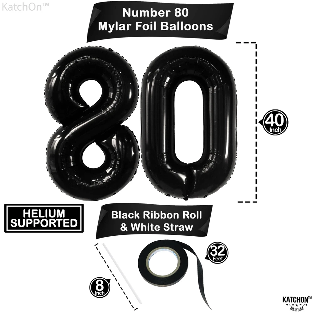 KatchOn Giant Black 80 Balloon Numbers - 40 Inch | Happy 80th Birthday Decora...