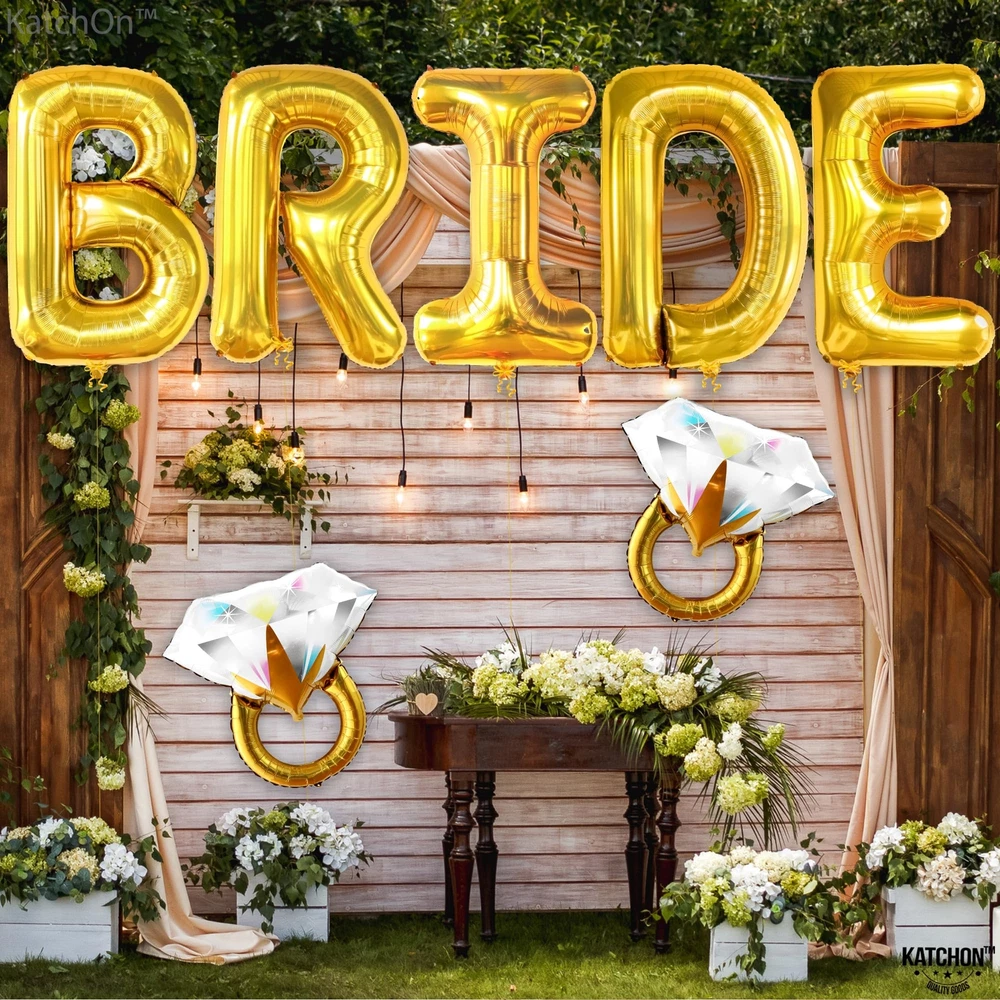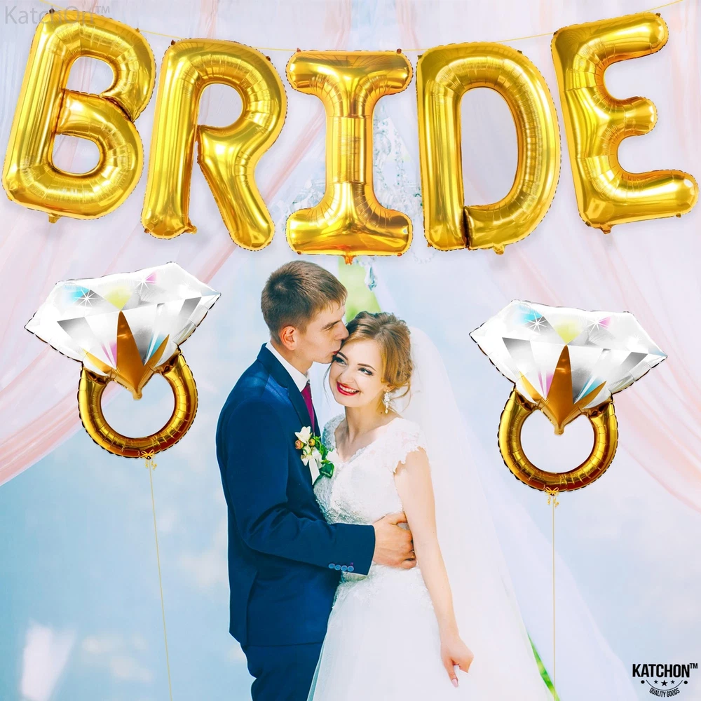 KatchOn, Giant Gold Bride Balloons Bachelorette - 40 Inch | Bride Balloons Gold for Bachelorette Party Decorations | Bridal Shower Balloons for Bridal Shower Decorations | Bride Gold Balloons Gold Bride Balloon with Rings JUMBO 40 INCH BRIDAL SHOWER BALLOON SET : Make your bachelorette party or bridal shower one to remember with these 40 inch gold bride balloons set. These elegant Bride balloons gold come with a matching 32 Inch, Pack of 2 Diamond ring balloon, creating a cohesive and beautiful decoration set. Embrace your new "MISS TO MRS" life and celebrate the coming wedding with these unique and charming bachelorette balloons. EASY TO ASSEMBLE | HELIUM-SUPPORTED : Add a touch of elegance with our gold bride balloons 40 inch and ring bride balloons bachelorette , the perfect addition to your bachelorette decorations for bachelorette party decor. These helium-supported large bride balloons are easy to inflate and have a self-sealing valve, making them easy to set up and take down. Made of high-quality, durable materials, these bride letter balloons are reusable and will complete your bachelorette party decorations. PREMIUM QUALITY | STURDY : The bride balloons gold for bachelorette decorations are typically made of high-quality mylar or foil durable materials. These ring and bride gold balloons materials are resistant to tears and punctures, ensuring that the bachelorette balloon will last throughout the event. These bachelorette balloons bride letters have a shiny and reflective surface that gives them a elegant and attractive appearance and ensuring that they will look great throughout the event. ELEVATE YOUR EXPERIENCE : We are very confident with the quality of this set of giant gold bride balloons bachelorette and ring bride baloon, Our bachelorette party balloons or bachelorette party supplies are made with high-quality mylar material, We care about your good experience and feedback, you will surely enjoy decorating bridal shower decorations with this bride mylar Balloon. Get this bachelorette party favors for bachelorette party decorations gold! LET HAPPILY EVER AFTER START FROM A BEAUTIFUL BRIDE BALLOONS PARTY : Make your bride balloons bachelorette bridal shower party unforgettable with this classy Bride balloons gold! This perfect Bridal Shower Balloons that will amaze everyone, Don't miss out on this amazing bride balloons sign . Combine this ring bridal balloons with any bachelorette decorations to have great bride decorations for wedding day party and make them unforgettable. Shipping from the USA All of our products are shipped from the USA, ensuring quick delivery to your destination. Payment We offer the following payment methods: PayPal, credit card, bank transfer, and eBay's secure payment system. Free Shipping & Free Returns Shipping within the USA is FREE. Additionally, any return is absolutely free for you. Risk-Free Purchase You have the option to return an item within 30 days without any justification. We cover the return shipping costs! Fast Shipping We ship immediately upon receipt of payment. Generally, the package is delivered within 2-3 days in the USA. If it takes longer, we will contact you. Quality and Costs Made in Europe, USA, China No customs fees or additional charges Total satisfaction guarantee Invoice with declared VAT available upon request in .pdf format Feedback Your feedback is very important to us. After you pay for your purchase, you will automatically receive positive feedback from us.