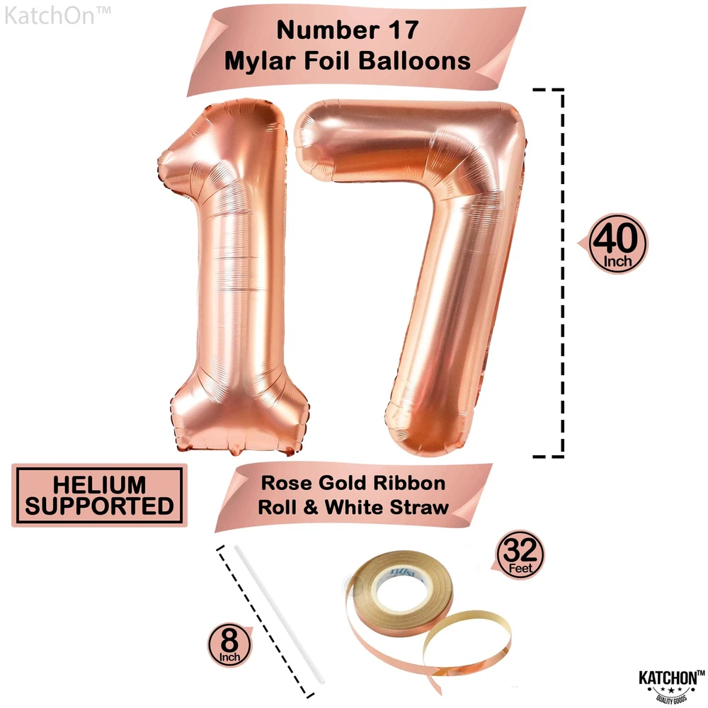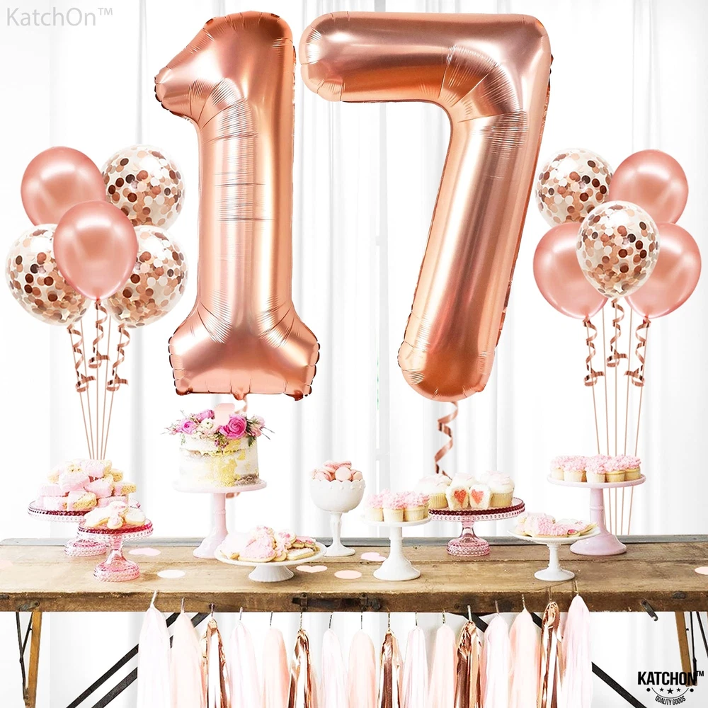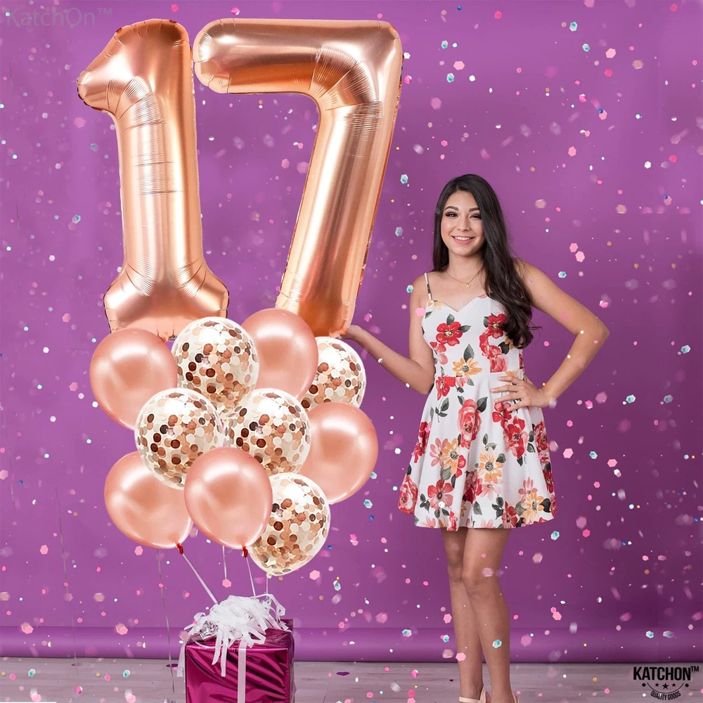 KatchOn, Giant Rose Gold 17 Balloon Numbers - 40 Inch | 17 Birthday Balloons, Confetti Balloons Set | Happy 17th Birthday Decorations for Girls | 17 Balloon Numbers, 17 Birthday Decorations for Girls Looking for 17th birthday balloons, 17th Anniversary or 17 years old birthday decorations girl? Make it count with Rose Gold Number 1 & 7 Balloons.Then these 17 Balloon Rose Gold Numbers are a perfect way to make a statement and a great addition to your 17 birthday party decorations. What will you Get:1) Rose Gold Number 1 Balloon - Pack of 1, Mylar Foil Balloon, 40 Inch, Helium Supported2) Rose Gold Number 7 Balloon - Pack of 1, Mylar Foil Balloon, 40 Inch, Helium Supported3) Rose Gold Latex Balloons - Pack of 5, Helium Supported, 12 Inch4) Rose Gold Confetti Balloons - Pack of 5, Helium Supported, 12 Inch5) 32 Foot (10 Meters Balloon String), White Color6) 1 Straw to inflate foil balloon. It even comes with tabs attached on the top and bottom to make it easier to tie to a birthday balloons for women helium 17 weight, or string across the wall.Decorate your party with this all-out Mylar birthday number 17 that includes your favorite party decor. Suggested uses:- 17 balloon numbers Party Decorations- Large Number balloon 17 rose gold balloon decoration, 17 birthday girl decorations - 17 birthday balloons for girls- Happy 17th birthday backdrop decorations- Rose gold number balloons 17 for rose gold birthday decorations 17th- 17 birthday balloon bundle, 17 birthday decorations for girls- Rose gold 17th birthday decorations Photo Props.- Happy birthday 17th decorations for 17th birthday decorations for boys- birthday decorations for 17th birthday party- Re-use happy 17th birthday decorations for girls rose gold several times.- Rose gold balloons 17th birthday decorations - Number 17 birthday balloons for 17 years old girl decorationsThis giant Rose Gold Number 17 Balloons is a great choice to achieve that splendid party you've ever imagined. Click Add to Car LARGE 40 INCH | 17 BIRTHDAY BALLOON – Looking for a 17 Year Old Birthday Decorations which will match up your little angel’s young and sweet only 17 decorations or 17 years old birthday decorations? This foil Rose gold 17 balloon numbers for birthdays that comes with Giant Rose Gold Numbers 1 & and 7 Balloons, a pack of 5 Real Rose Gold Latex Balloons & pack of 5 Rose Gold Confetti Balloons will complete your happy 17th birthday decorations for a girl BEAUTIFUL TOUCH OF REAL ROSE GOLD 17 BALLOONS WITH CONFETTI – Do you want elegant Rose gold 17 balloon numbers for your teen birthday decorations 17? These 17 Rose Gold Balloons are perfect for Coachella themed birthday decorations for women 17 or decorating your sweet 17 birthday decorations rose gold , 17 girl birthday, anniversary or any other worth celebrating be it work celebrations. Perfect match for Dancing Queen Party Decorations and many more occasions REUSABLE | STURDY ROSE GOLD BALLOONS PACK – This Mylar 17th birthday balloon for girls is made sturdy enough and stand the long-hour. It comes with 8 inch white plastic straw & and 32 foot white string roll. Mylar 17 balloons have a Self-sealing valve for inflation and deflation. Inflate slowly with air or helium; just fill 90% of the balloons space that could allow the balloon to expand completely for this 17 birthday decorations for girls. Start using this 17 year old decorations Today! MAKE A CONFIDENT CHOICE | COMPLETE SATISFACTION - We are very confident with the quality and of this Giant Number 17 Balloons. We are always happy to help you regarding this 17 number balloons if you were not satisfied with its quality for any reason. We care about your experience and good feedback so we personally made sure that you’re enjoy decorating your seventeen birthday decorations with these 17 balloon numbers balloons. Start using this 17th birthday decorations for girls! TRENDY & STYLISH PARTY DÉCOR KIT ADD-ON – Organizing a classy and luxurious-look giant 17-girl birthday decorations, 40-inch? Light up the event with this Rose Gold Helium Foil 17 Balloon Numbers Decorations Supplies. Make your party event a big hit with a classy-themed party! You’ll definitely get the remarkable impact you wished on your Birthday Party or any event. this 17 girl birthday decorations make the seventeenth birthday more special. Start using this 17 Birthday Decorations for Girls. Shipping from the USA All of our products are shipped from the USA, ensuring quick delivery to your destination. Payment We offer the following payment methods: PayPal, credit card, bank transfer, and eBay's secure payment system. Free Shipping & Free Returns Shipping within the USA is FREE. Additionally, any return is absolutely free for you. Risk-Free Purchase You have the option to return an item within 30 days without any justification. We cover the return shipping costs! Fast Shipping We ship immediately upon receipt of payment. Generally, the package is delivered within 2-3 days in the USA. If it takes longer, we will contact you. Quality and Costs Made in Europe, USA, China No customs fees or additional charges Total satisfaction guarantee Invoice with declared VAT available upon request in .pdf format Feedback Your feedback is very important to us. After you pay for your purchase, you will automatically receive positive feedback from us.