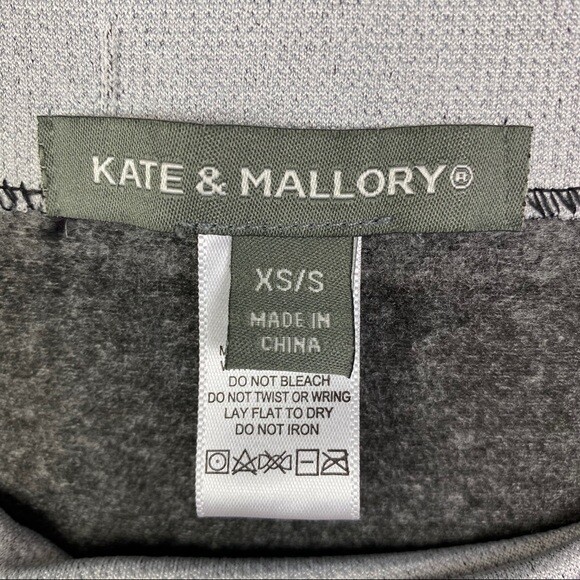 KATE & MALLORY Women's Gray Black Printed Hi-Rise Workout Leggings Size XS. Wide elastic waistband, pull on and stretchy. Soft and comfy, perfect for your everyday workout. Great Condition. Smoke free home. 92% Polyester / 8% Spandex Size: XS Measurements are approximate Waist: 12" Inseam: 28.5" Rise: 12" #1375