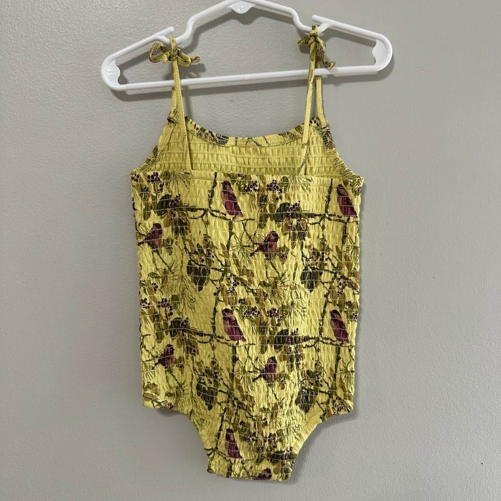 Kate Quinn Girls 18-24 Months Smocked Tie Strap Bodysuit Yellow Bird Sunsuit