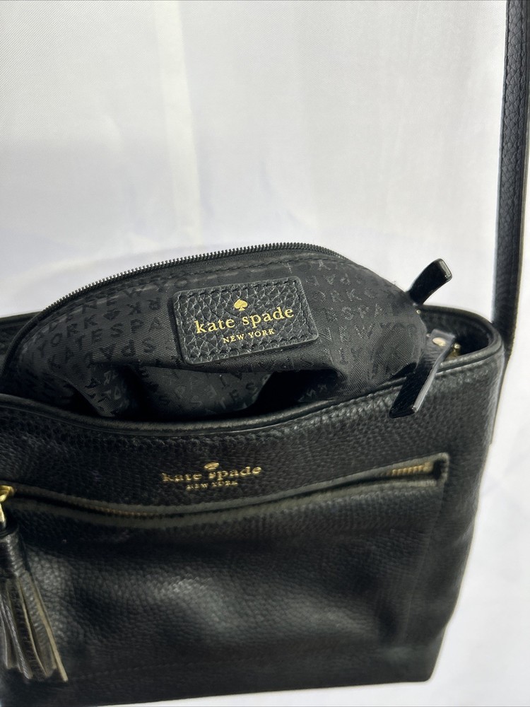 Kate Spade Crossbody Bag Womens Black Pebbled Leather Purse Gold Hardware