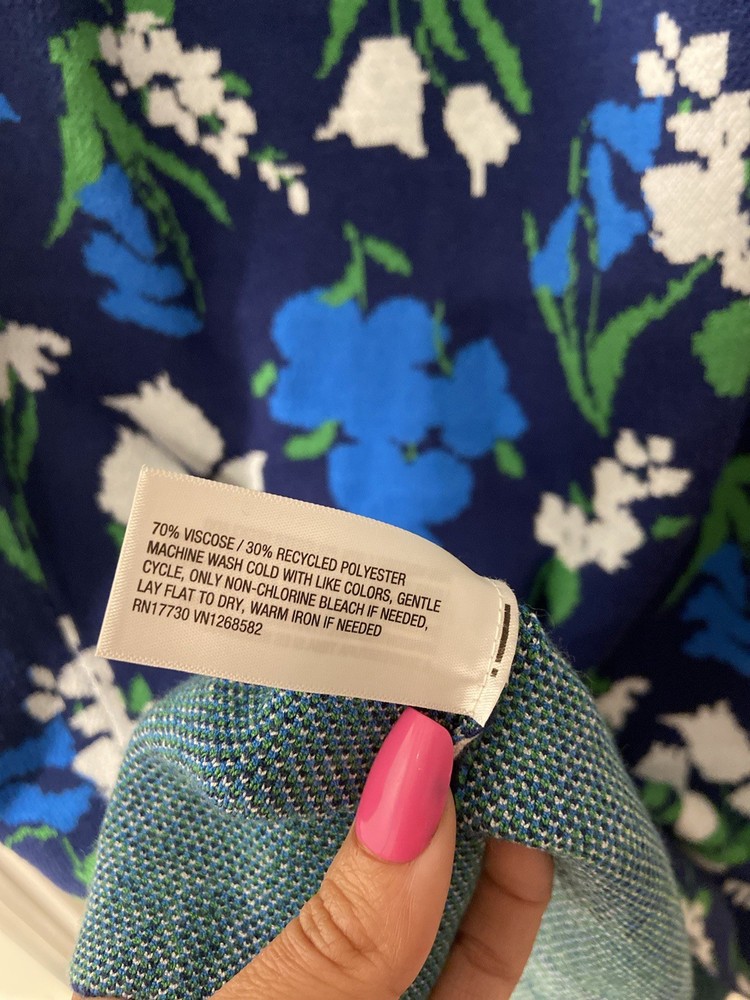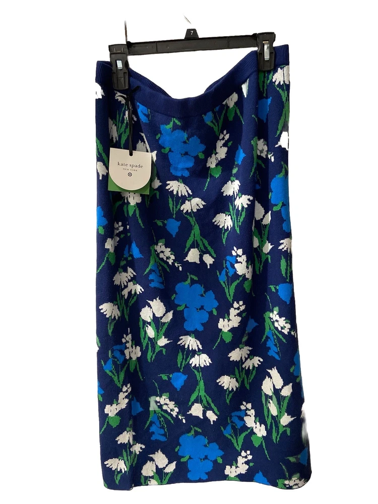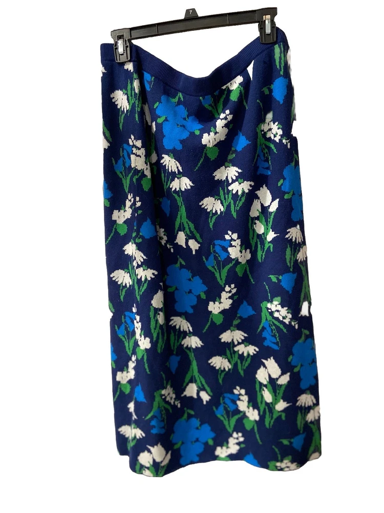 ⚡️Fast shipping ✨Smoke and pet free home The Kate Spade Floral Sweater Midi Skirt in size XL features a solid blue, green, and white color pattern, with a full waistband elastic closure. Made of 70% viscose and 30% recycled polyester, this jacquard knit skirt is machine washable and line dry or lay flat to dry. With a mid-rise and no pockets, this skirt is perfect for women looking for a stylish and comfortable piece of clothing. Made in the United States by Kate Spade New York, this skirt is a fashionable choice for any wardrobe.