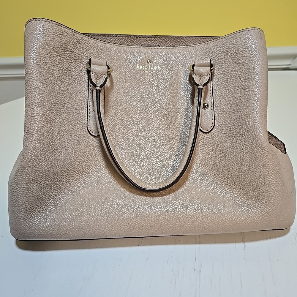 Style:Satchel/Top Handle BagExterior Material:LeatherCountry of Origin:ChinaBrand:kate spade new yorkExterior Color:beige with pink undertonesDepartment:Women