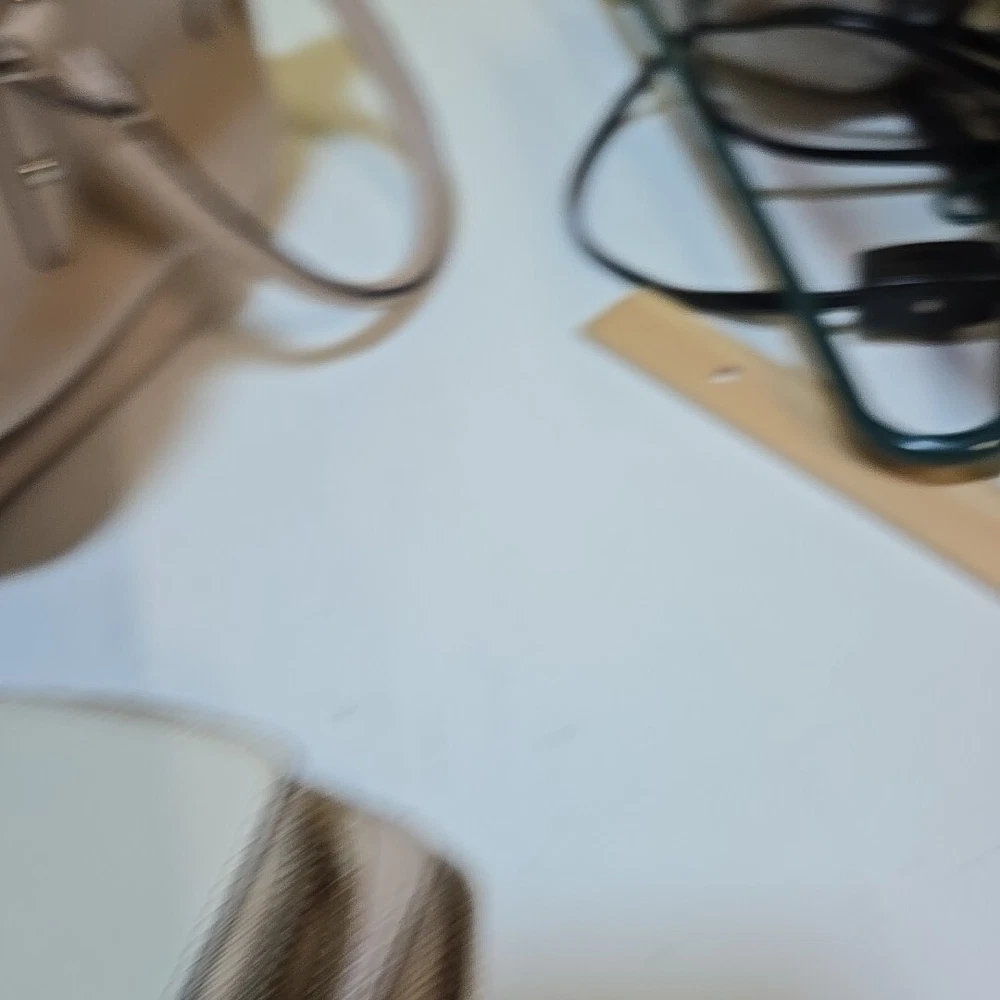 Nice! No long handle. Has a few light imperfections from use. Color is beige with pink undertones.