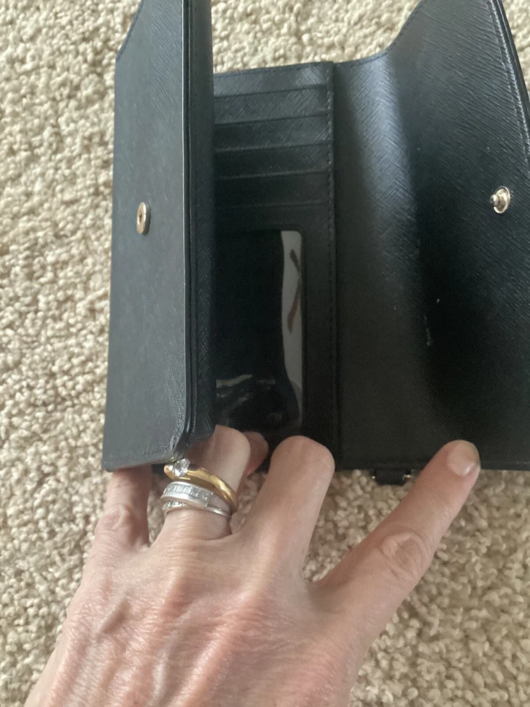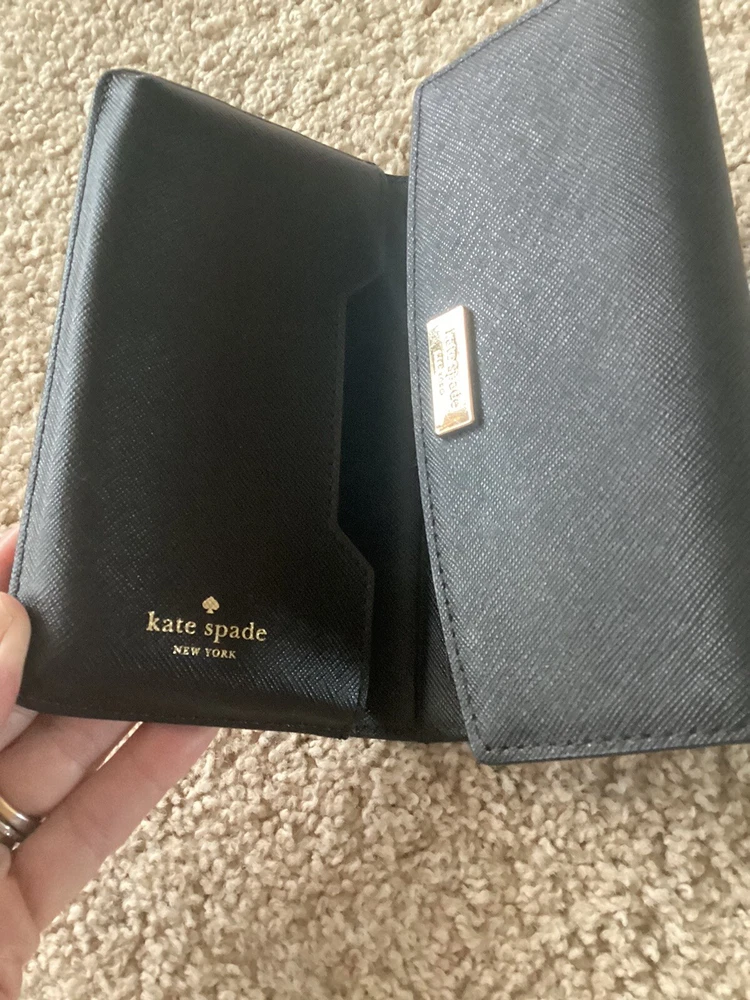 Color:BlackStyle:WristletSize:One SizeMaterial:Leather, saffiano leatherFeatures:Credit Card, ID holder, Photo HolderType:WalletAccents:LogoDepartment:WomenTheme:phone caseFabric Type:leatherCharacter:PouchBrand:kate spade new york