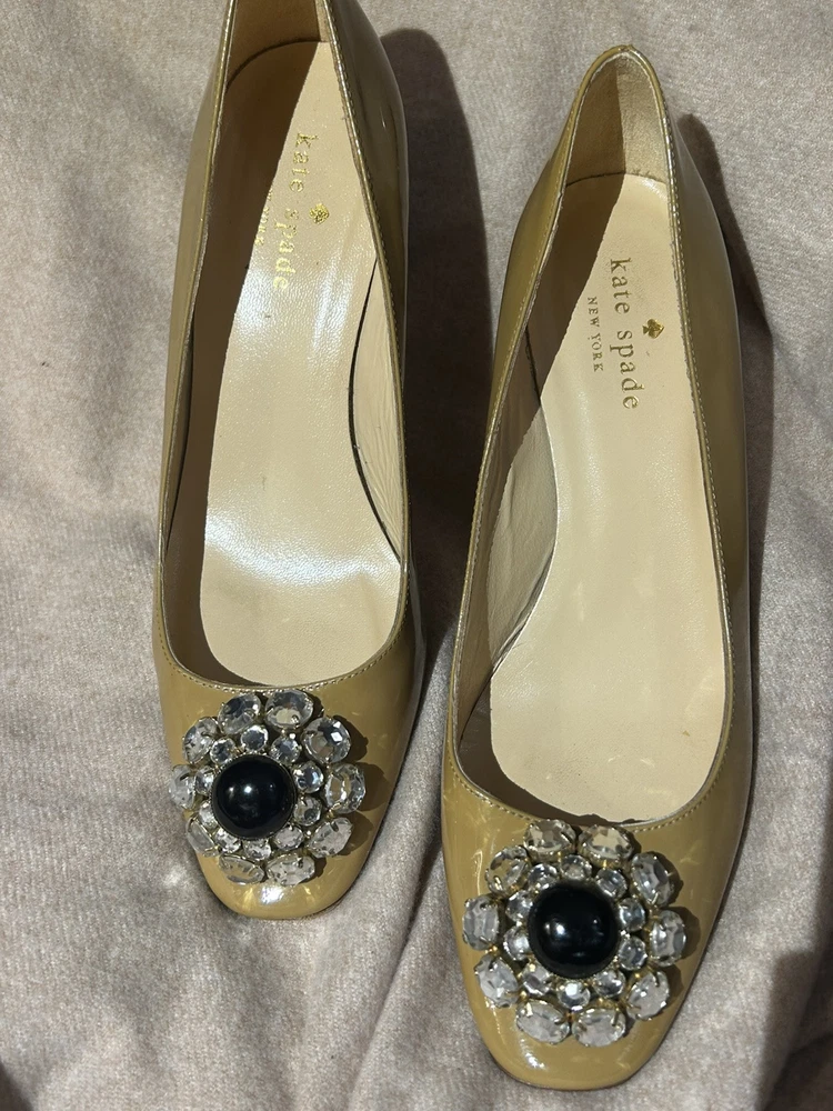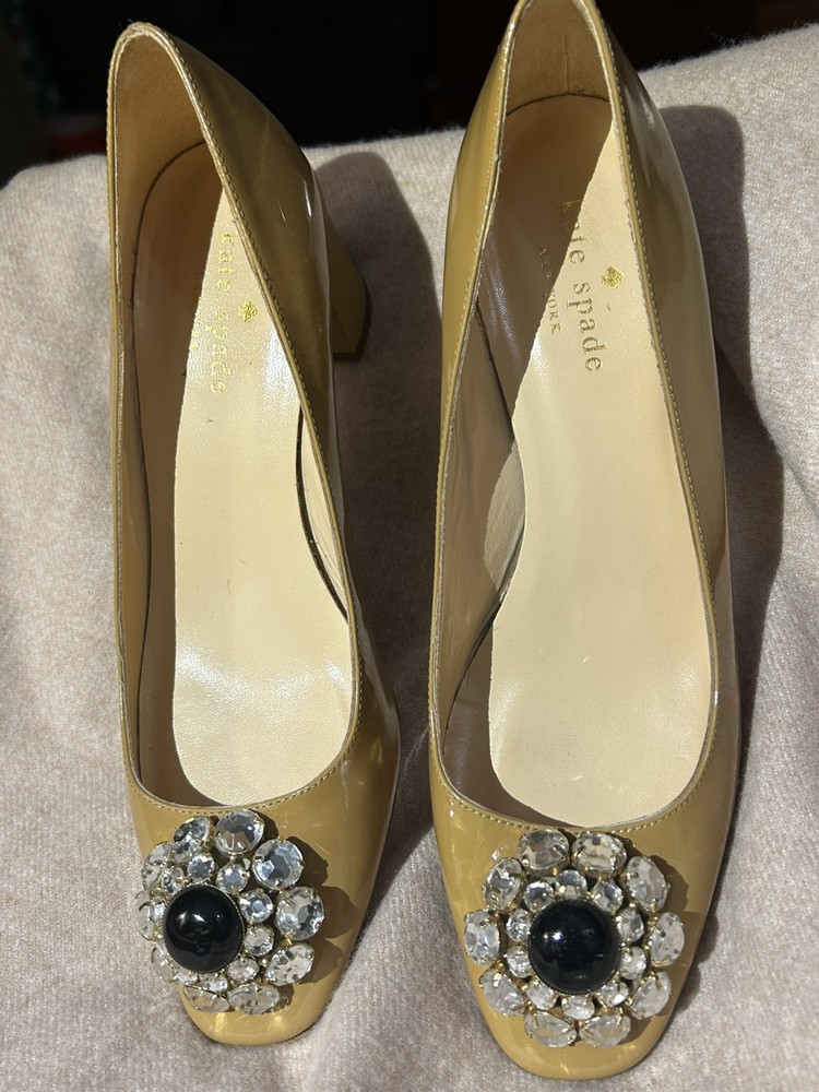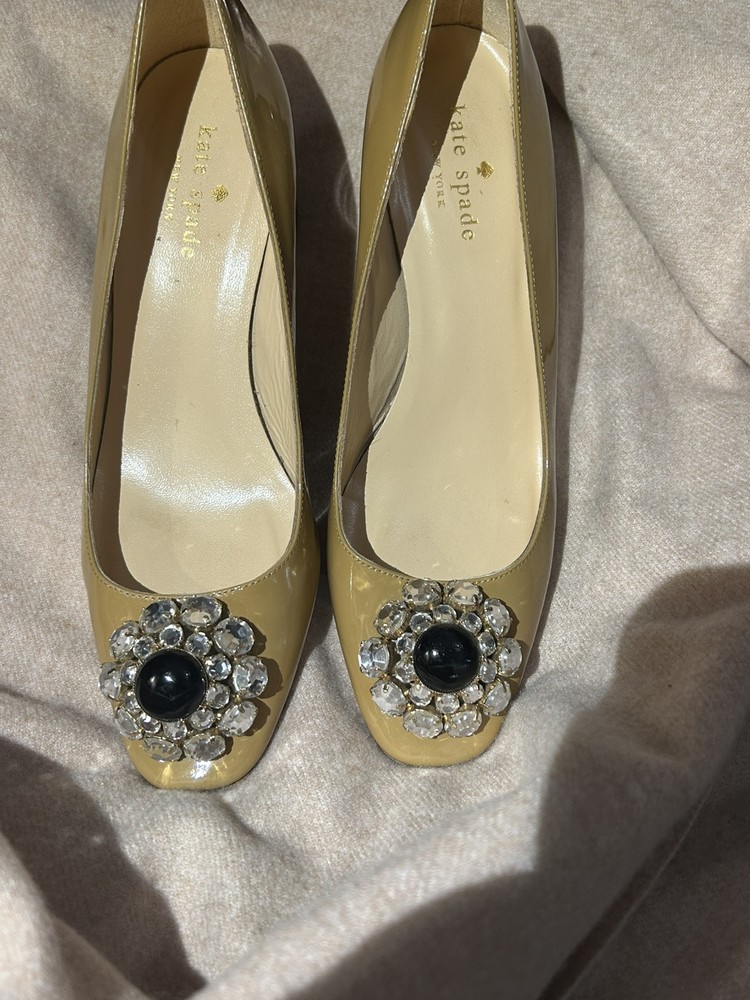 Closure: Slip On Vintage: No Insole Material: Leather Seller Notes: “EXCELLENT” Shoe Width: B Pattern: Solid Type: Heel Accents: Crystal Heels, DECORATIONS Features: Comfort AU Shoe Size: 6.5 Color: Beige Lining Material: Leather Toe Shape: Square Toe US Shoe Size: 7 Heel Height: 2 Heel Style: Block EU Shoe Size: 36 Department: Women Brand: kate spade new york Upper Material: Patent Leather Customized: No UK Shoe Size: 7.5 Style: Pump Theme: Metal Outsole Material: Leather
