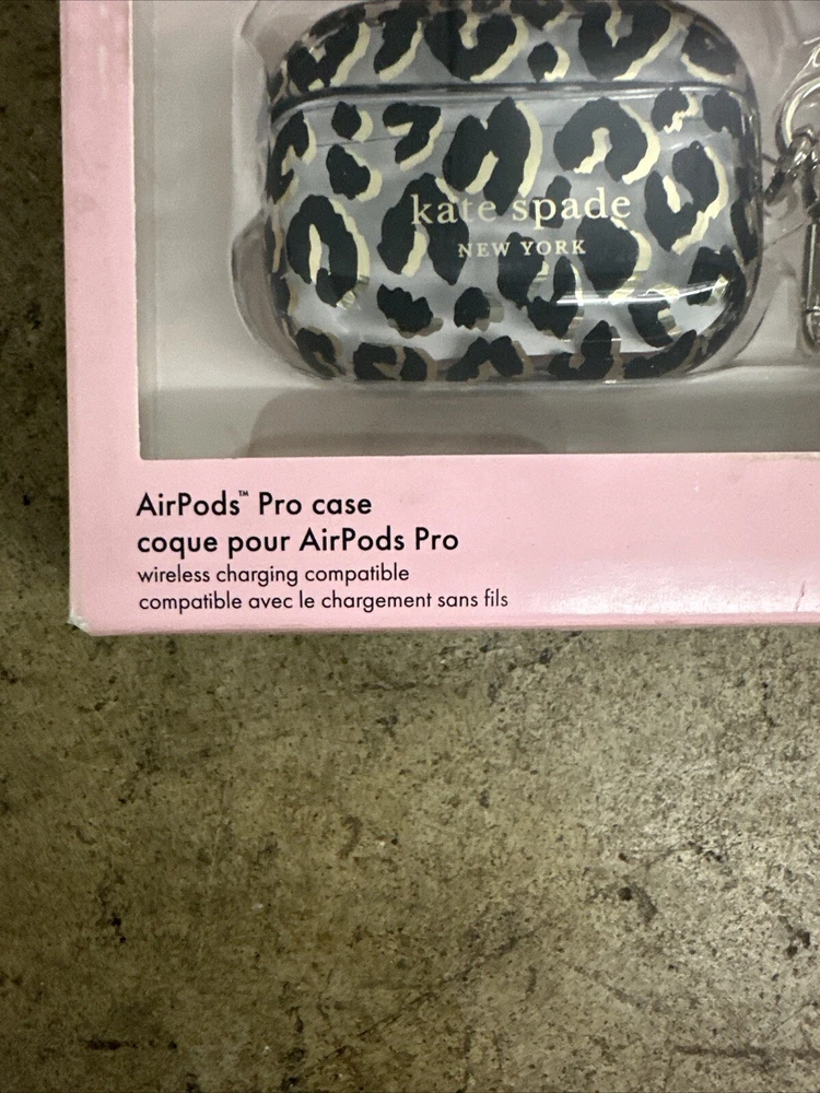 This Kate Spade New York smart case is the perfect accessory for your Apple AirPods Pro. Featuring a stylish city leopard print in black, gold, and clear, this case is made of durable TPU material and comes with a convenient clip for easy attachment. The case is designed specifically for the Apple AirPods Pro and is compatible with that brand. In addition to its chic design, this case also offers functional features such as a secure closure and protective padding to keep your AirPods safe from scratches and damage. With its slim profile and lightweight design, this Kate Spade New York case is the ideal choice for anyone who wants to add a touch of sophistication to their AirPods while keeping them safe and secure. New in box but box does have some marks on them