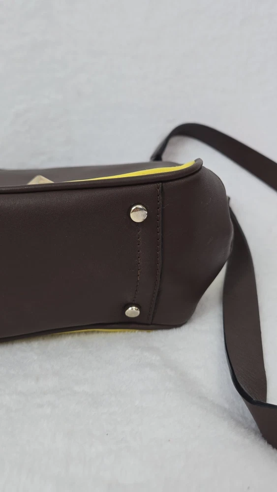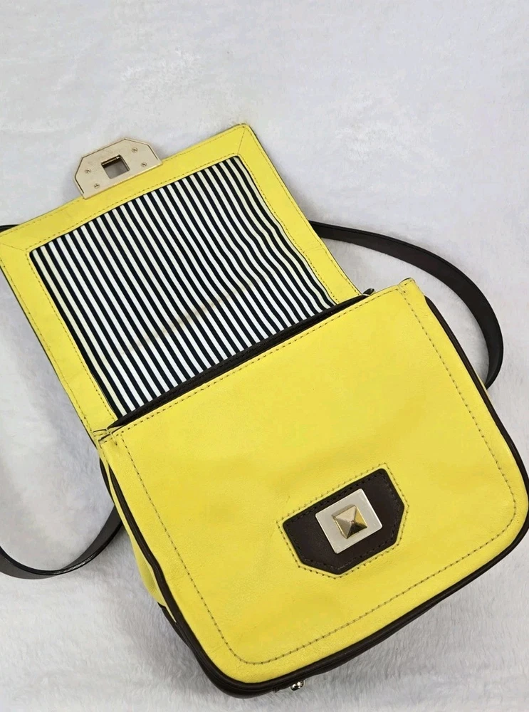 Kate Spade New York Yellow Brown Leather Top Handle Crossbody Bag Purse *** There are some flaws on the outside of the bag and some discoloration marks inside. Please see attached photos. Please feel free to ask any questions you may have. Thank you for looking.