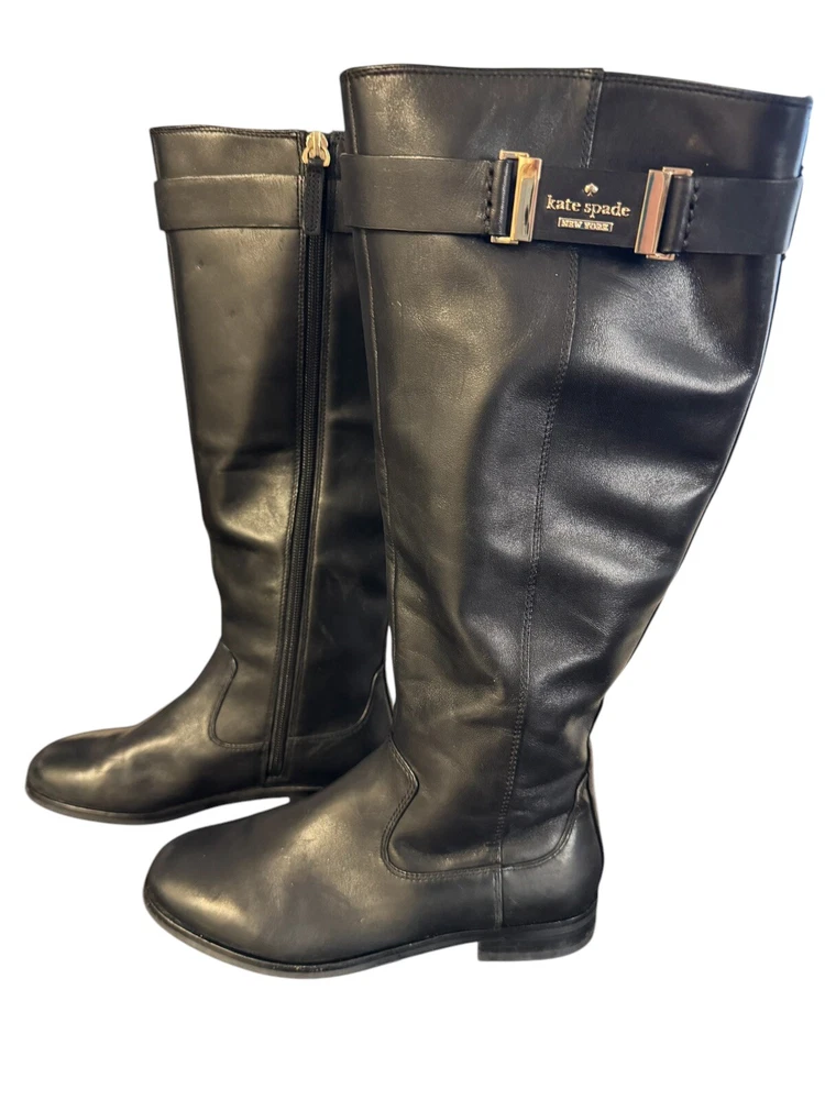 Kate Spade New York Women's Ronnie Equestrian Black Riding Knee High Boots 5.5