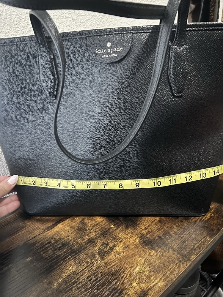 Exterior Color: Black Handmade: No Exterior Material: Leather Hardware Color: Gold Department: Women Country/Region of Manufacture: China Theme: Classic Lining Material: Leather Accessories: Detachable Strap Bag Width: 15 in Hardware Material: Gold-Plated gtin13: 0767883726044 MPN: WKR00059 Bag Height: 11 in Personalize: No UPC: 0767883726044 Occasion: Party/Cocktail, Casual, Workwear, Business Style: Tote Vintage: No Shape: Rectangle Pattern: Solid Accents: Zipper Model: kate spade new york Harper Brand: kate spade new york Size: Medium Bag Depth: 5 in Handle/Strap Material: Leather Features: Lined, Pockets Handle Style: Double Handles Closure: Zip