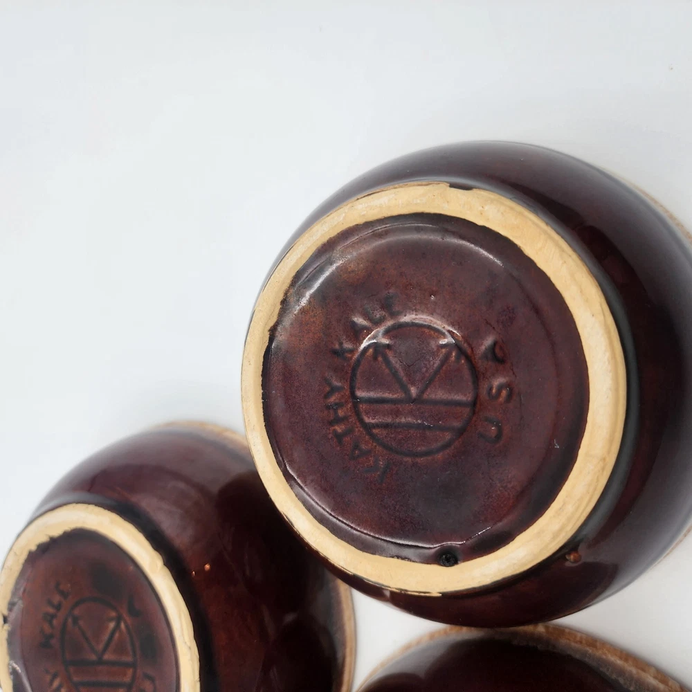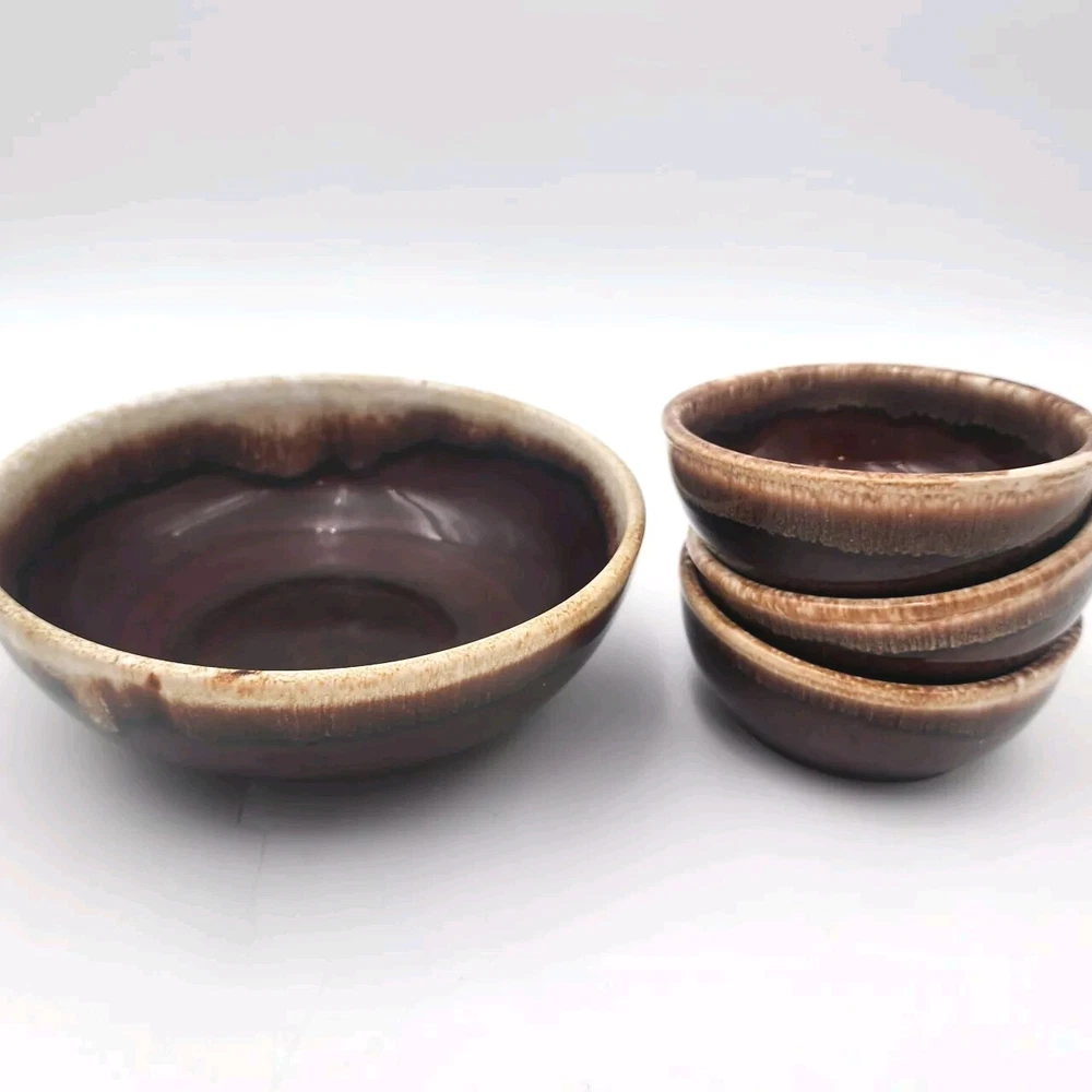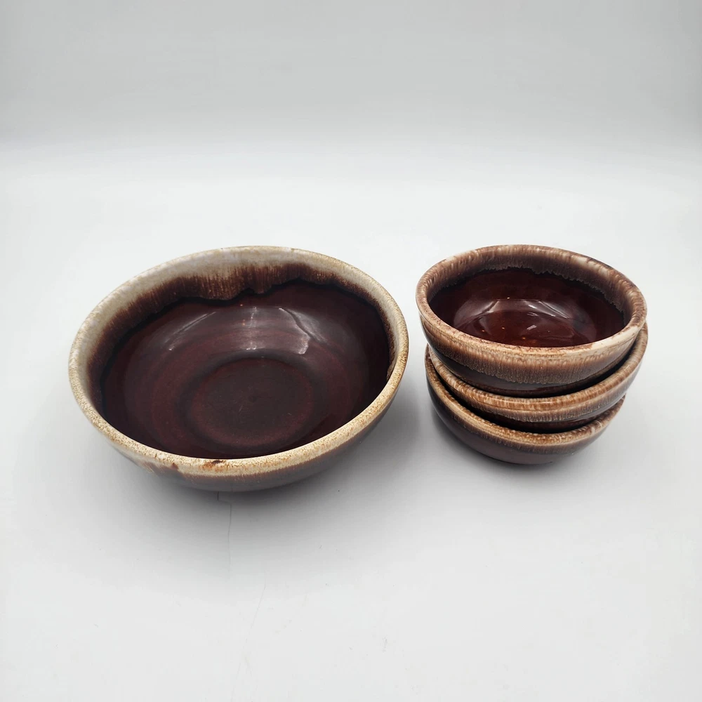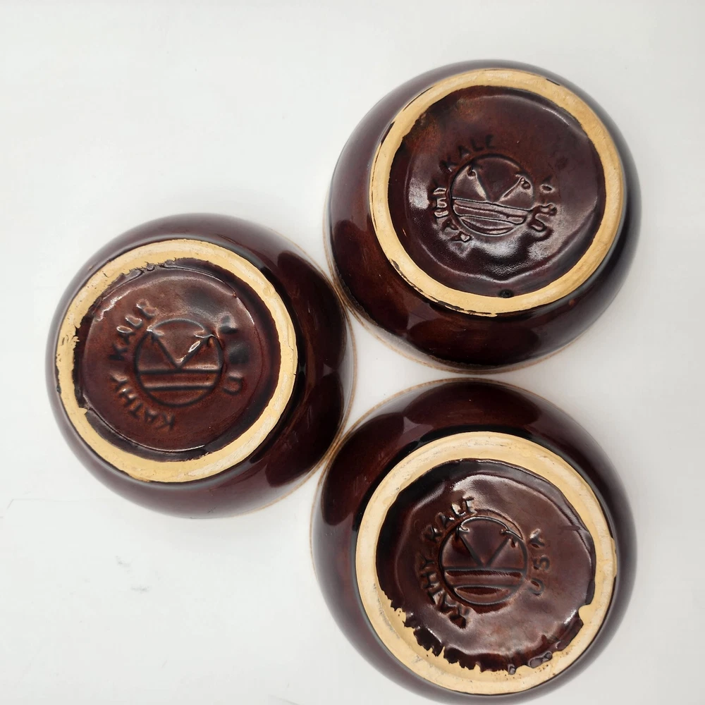Pattern:VintageUPC:does not applyType:BowlCountry/Region of Manufacture:United StatesTime Period Manufactured:1950-1959Color:BrownSet Includes:Bowl, Serving BowlFinish:GlossyItem Weight:4.2 lbItem Diameter:5.25 inHandmade:NoAntique:NoDepartment:AdultVintage:YesEra:Mid 20th Century (1941-1969)Brand:Kathy kaleProduction Technique:PotteryNumber of Items in Set:Four-PieceProduction Style:EarthenwareEstado del artículo:UsadoOrigin:AmericaBackstamp:ImpressedCare Instructions:Machine Washable up to 140°Fgtin13:does not applyStyle:Mid-Century ModernMaterial:StonewareShape:RoundOriginal/Licensed Reproduction:OriginalFeatures:Decorative, Dishwasher Safe, StackableOccasion:All Occasions