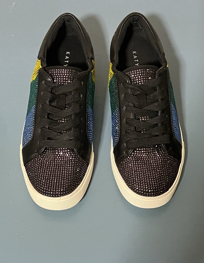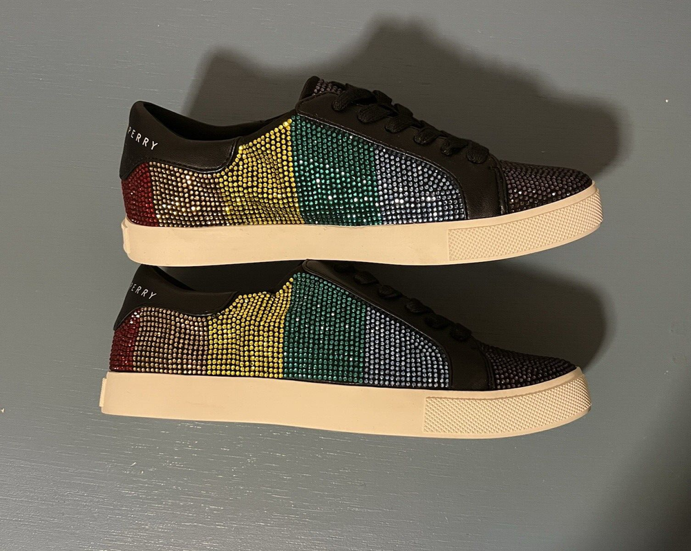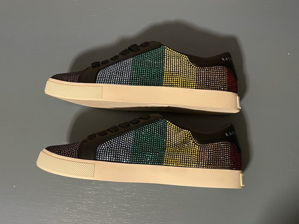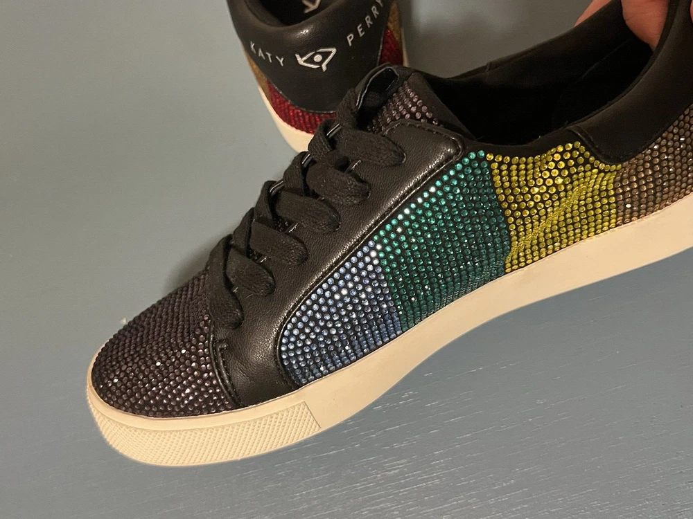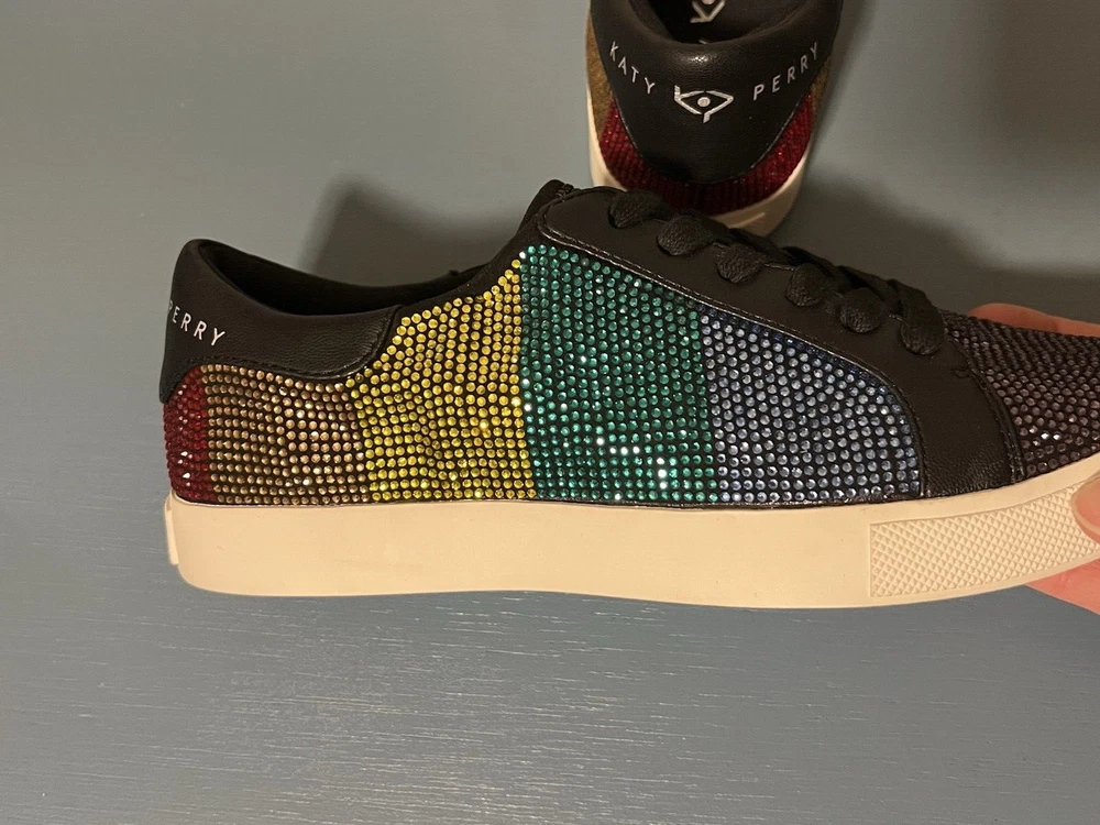 gtin13: N/A Shoe Shaft Style: Low Top Accents: Rhinestone Brand: Katy Perry Theme: Mardi Gras Color: Multicolor Department: Women US Shoe Size: 6 Style: Low Top Closure: Lace Up Occasion: Activewear, Casual, Workwear Customized: No Vintage: No Shoe Width: Medium (B, M) Signed: No Seller Notes: “Excellent pre-owned condition. No missing rhinestones. See pictures.” UPC: N/A Model: Katy Perry Rainbow Rizzo Season: Fall, Spring, Summer Type: Athletic